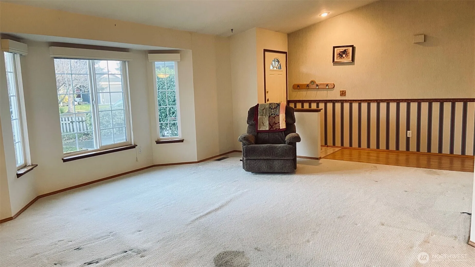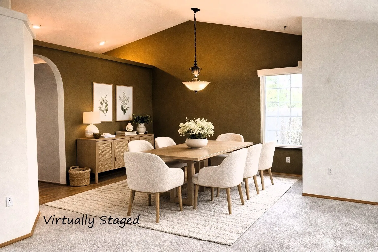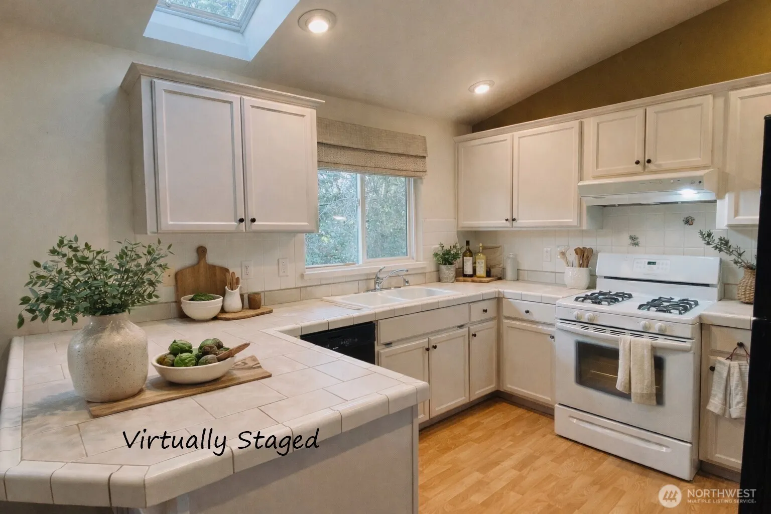 Charming Marysville rambler on a quiet cul-de-sac! Vaulted ceilings, skylights, and natural light create open ambiance throughout. The inviting great room with gas fireplace flows seamlessly from the kitchen, ideal for both everyday living and entertaining. Enjoy a generously sized primary bedroom and step outside to a covered back deck overlooking a tranquil greenbelt—offering privacy and serenity in the fully fenced backyard. Forced-air heating and cooling with a heat pump provide year-round comfort. New roof in 2023. All appliances stay. A wonderful opportunity to build instant equity in a desirable location near shopping, dining, parks & major commute routes. No HOA. Virtually staged to help you imagine the possibilities.