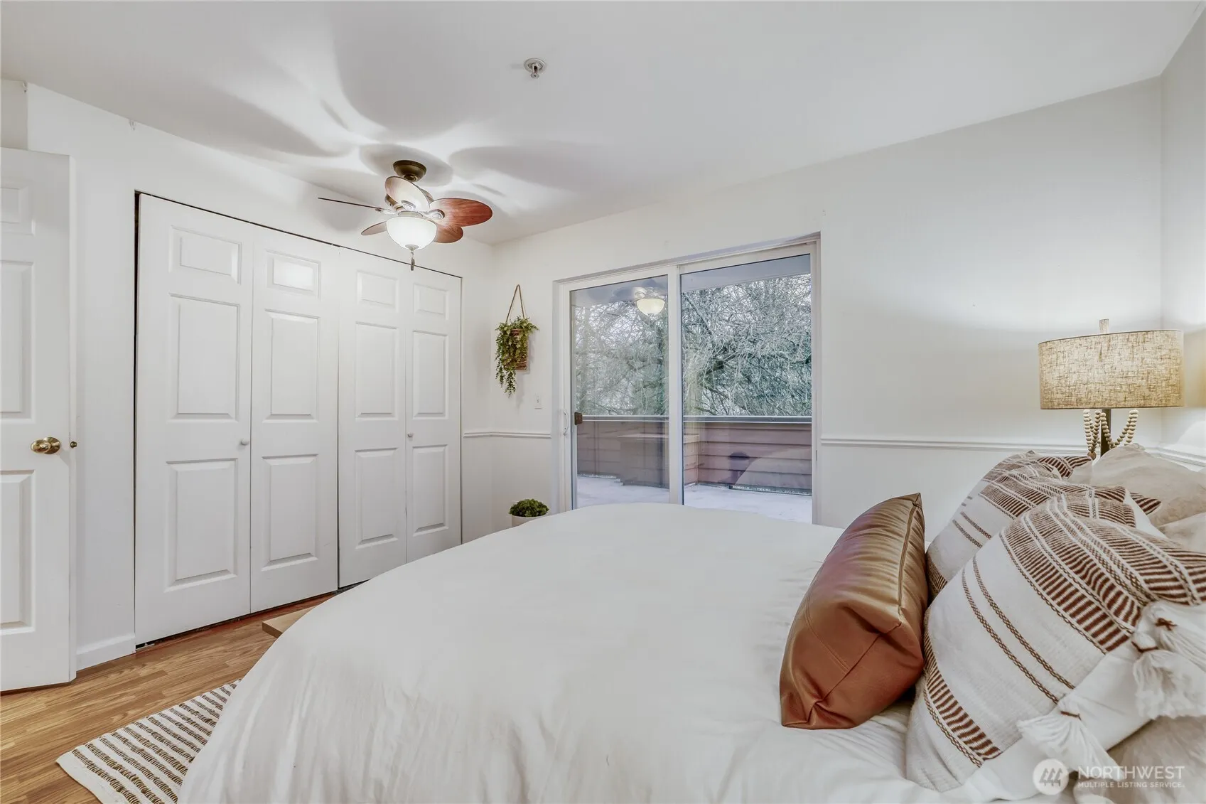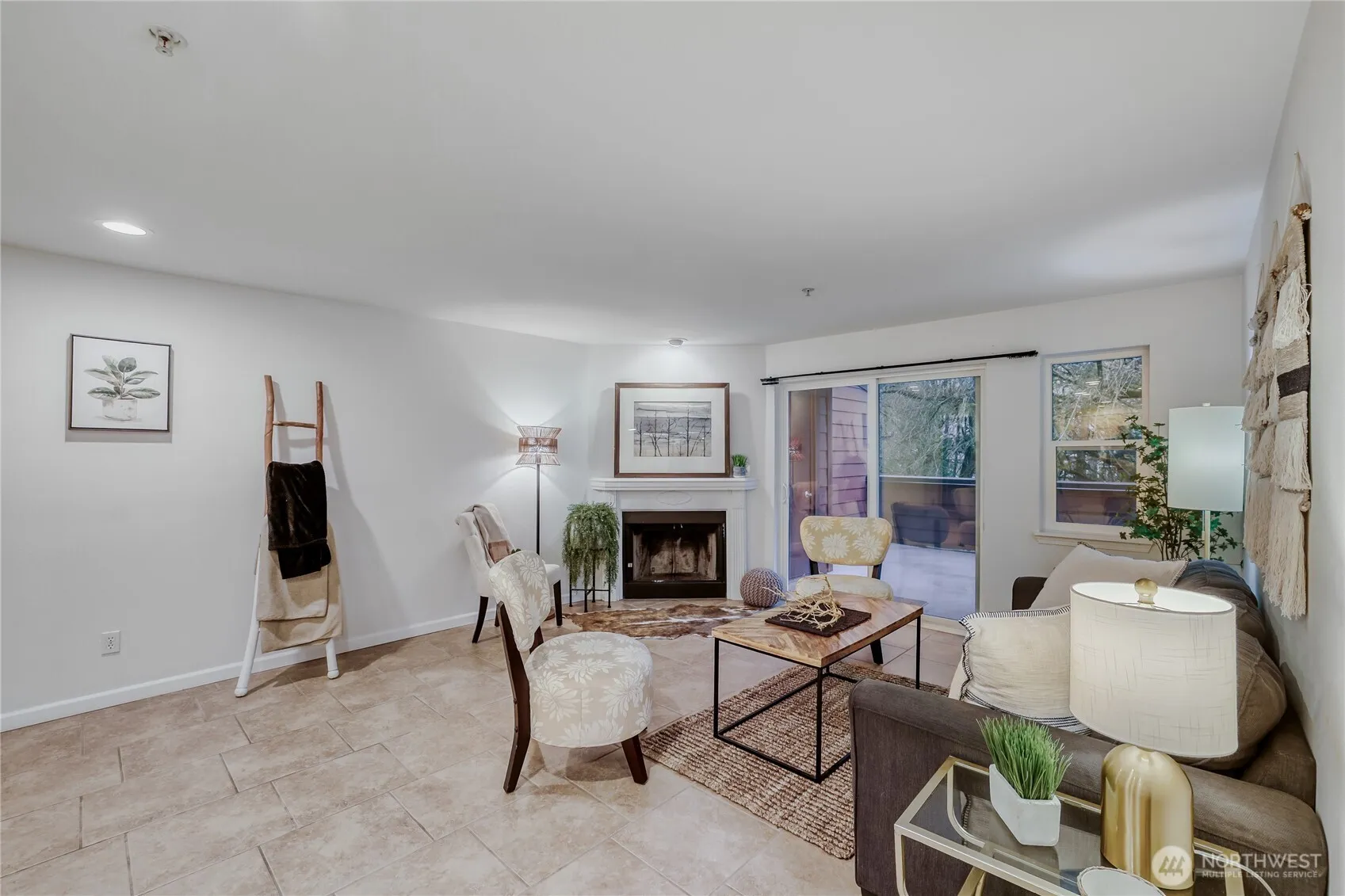 Welcome to Regentwood, a peaceful hillside community overlooking a lush greenbelt. This light-filled 2-bedroom, 1.75-bath condo offers an open floor plan with a cozy wood-burning fireplace and thoughtful updates throughout. The kitchen features granite counters, stainless steel appliances, tile backsplash, and a breakfast bar. Enjoy the rare, oversized covered deck spanning the length of the home—perfect for relaxing and entertaining. Garage parking PLUS one assigned parking spot and deck storage. Amenities include a clubhouse, exercise room, pickleball court & gated RV/boat parking. Pets welcome, no rental cap. Conveniently located near downtown Bothell, Kirkland, UW Bothell, Totem Lake Village, major highways, and the Burke-Gilman Trail.