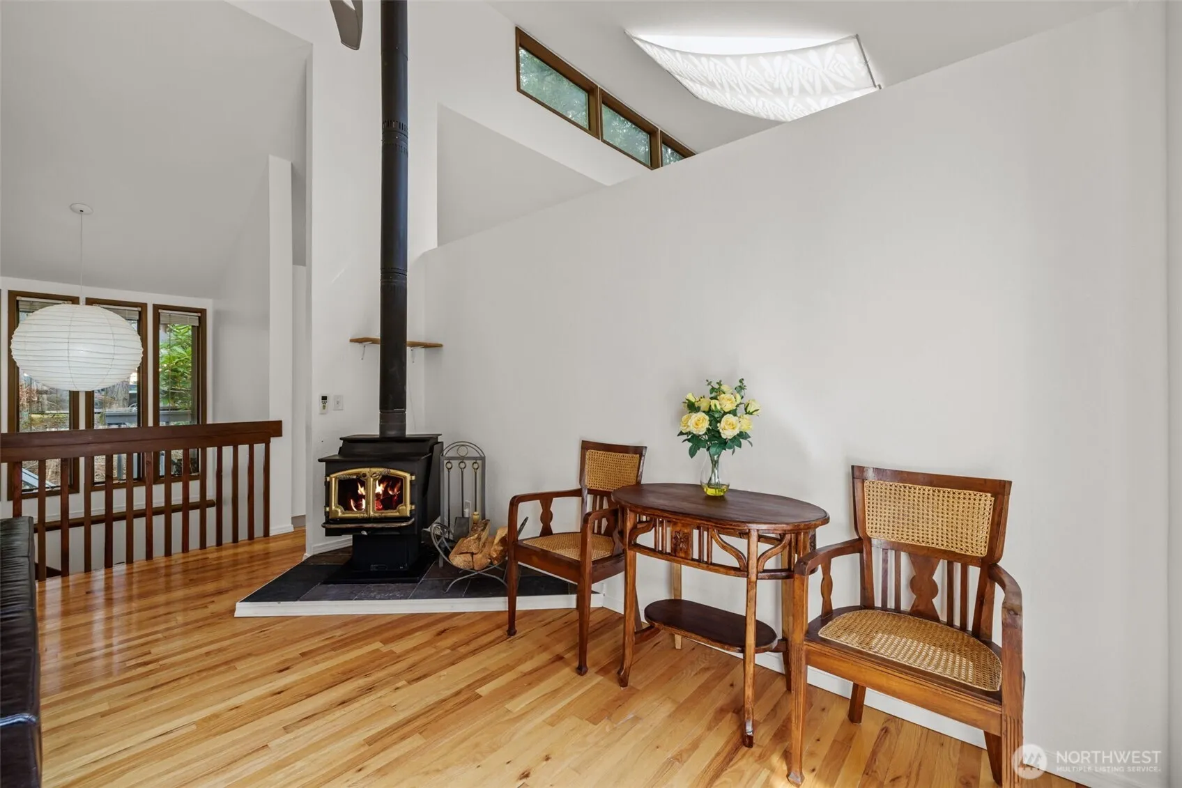 A Pacific Northwest Contemporary Home! Situated in a peaceful, tranquil, private setting on a rare 3.56-acre lot. High, vaulted ceilings, a bright & airy kitchen with skylights, ceiling fans, GE profile & Bosch SS appliances with a gas stove, built-in cabinets, granite countertops, wood block island, a large deck overlooking the greenery, living room with 2 fireplaces, & hardwood flooring throughout. Spacious Primary suite with updated upstairs bathrooms, family room, a flex space and oversized garage w/20ft work bench & extra storage space. You will love the fruit trees, 21 mature blueberry bushes, garden space, outbuilding/mini gym with storage space, private picnic grounds, fire pit, and treehouse surrounded by 2nd growth trees.