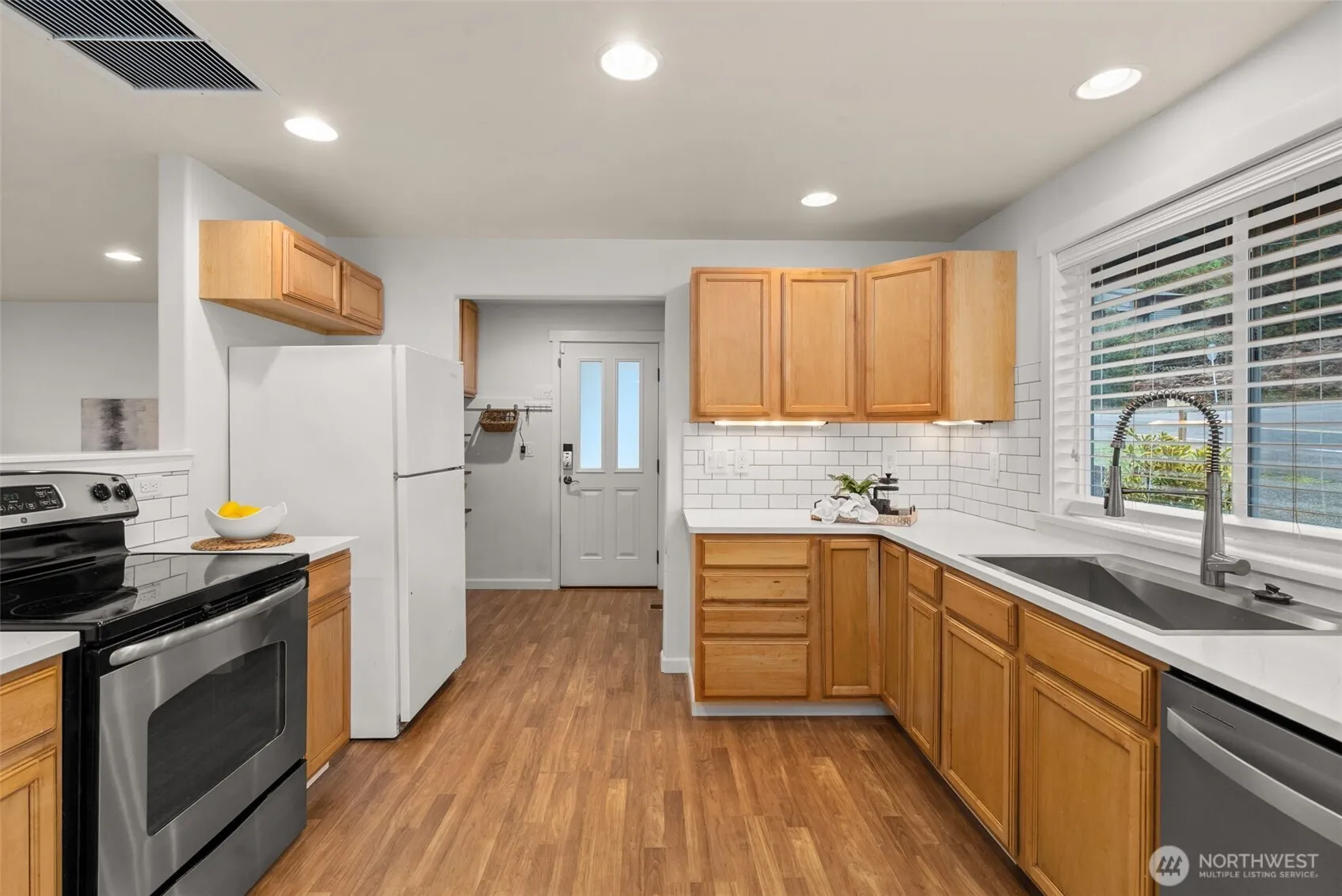 Discover this charming rambler on Tumwater Hill nestled on an expansive corner lot. Thoughtfully designed w/updates throughout, this home features a spacious open-concept area seamlessly blending the kitchen, dining, and living rooms. Quartz countertops, tile backsplash, bay windows, dining nook and a large pantry in kitchen filled w/natural light. Oversized living room offers flexibility to best suit your lifestyle needs. Covered patio overlooks fully fenced backyard w/ garden beds & drive-through double gate. 1/3 acre lot zoned LDR (6-9/acre), offering potential for development. Garage w/ workbench, shelving, and a private upstairs room w/mini-split. Just 2 blocks from Jim Brown Park and a short drive to downtown and freeway access.