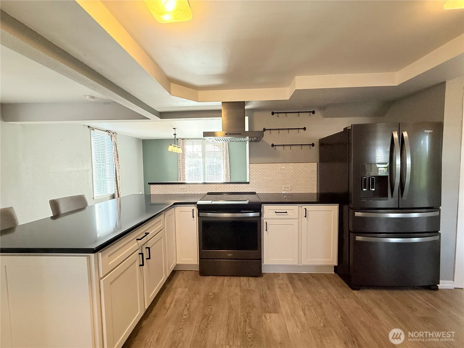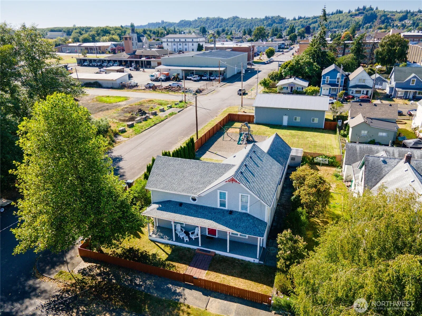 Beautifully updated 4-bedroom, 2.25-bath home on a large corner lot. Features include a remodeled open kitchen, new flooring, and fresh carpet throughout. Stay comfortable year-round with an energy-efficient heat pump for heating and cooling. Enjoy outdoor living on the new covered deck—perfect for relaxing or entertaining. An impressive 1,400+ sq ft detached 4-car shop/garage offers ideal space for a mechanic, hobbyist, or anyone in need of serious workspace or extra storage. With convenient access to downtown amenities and potential for commercial zoning, this property offers both lifestyle and investment appeal. Buyer to verify all.