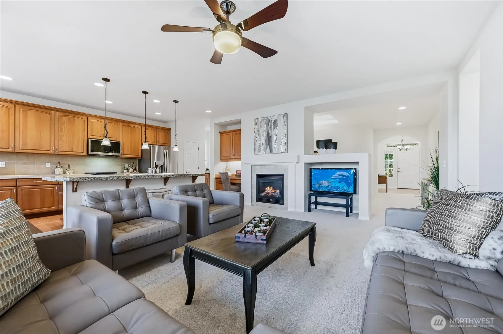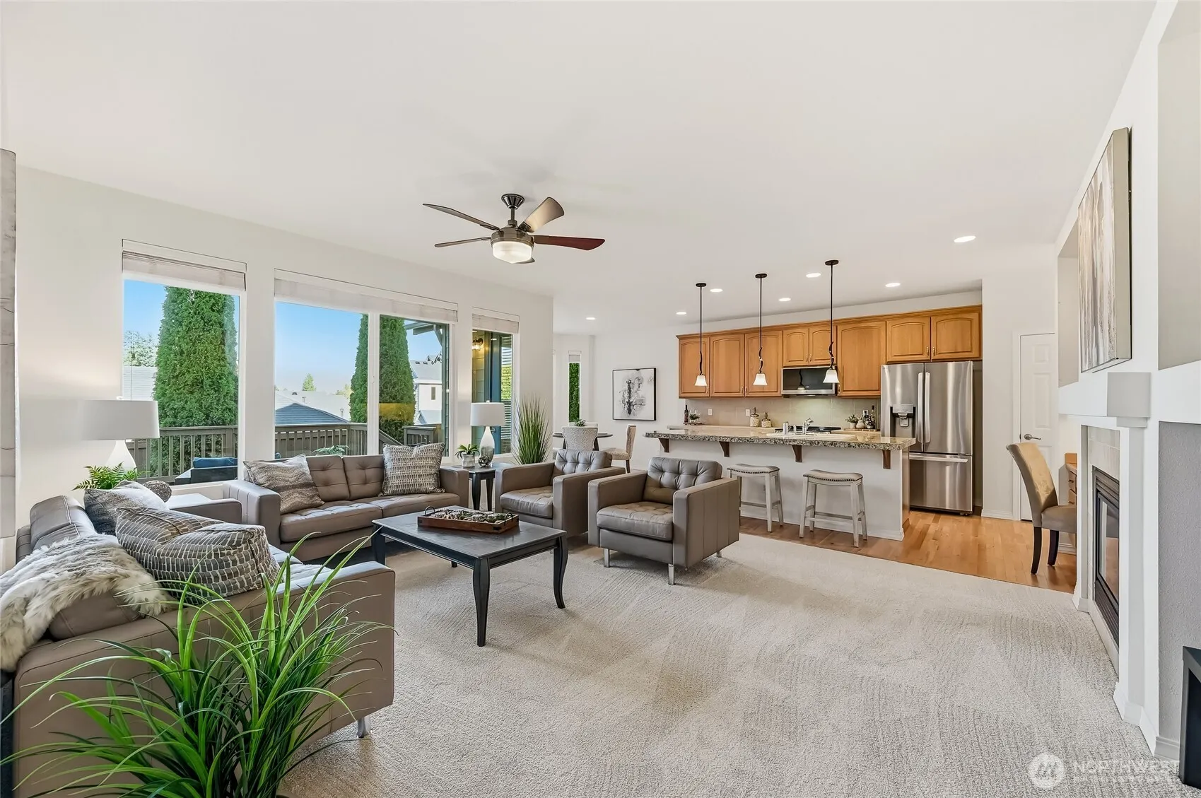 RARE-A true 3 bedroom Bainbridge model home located on one of Trilogy’s most coveted streets just a short level stroll from the Cascade Club, the hub of Trilogy activities & amenities. This flexible plan includes a spacious great room plus a large formal dining room with oversized skylight. The island kitchen features 42” cabinetry, pull-out shelving, all NEW stainless-steel appliances and an informal dining area. Primary suite w/private bath includes dual sink vanity, step-in shower & walk-in closet. 2 additional generously sized bedrooms plus a full bath. The fully fenced, private backyard includes a large partially covered deck. New roof in August 2025/New Furnace & AC in 2021/New carpet in Dec 2025. A pre-inspected turnkey gem. Ages 55+