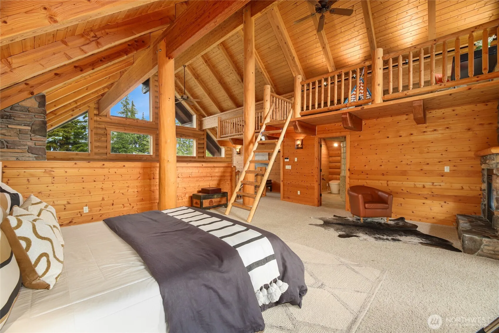 Custom log home spanning 4.5 stories, featuring an open-concept living with vaulted ceilings and expansive windows, chef’s kitchen, granite countertops, stainless steel appliances, and a generous dining area. Radiant heated floors run throughout the home with individually controlled zones. The upper levels include an oversized primary suite with 5-piece bath, private deck, walk-in closet + bonus loft perfect for an office, yoga/flex space or play area. Media room/flex space or potential second primary suite on lower level with its own private deck. Entry level offers two additional bedrooms, a 3/4 bath, and two single-car garages all within walking distance of the slopes, shops, and restaurants. 5 decks w/1,428 sq/ft for entertaining.