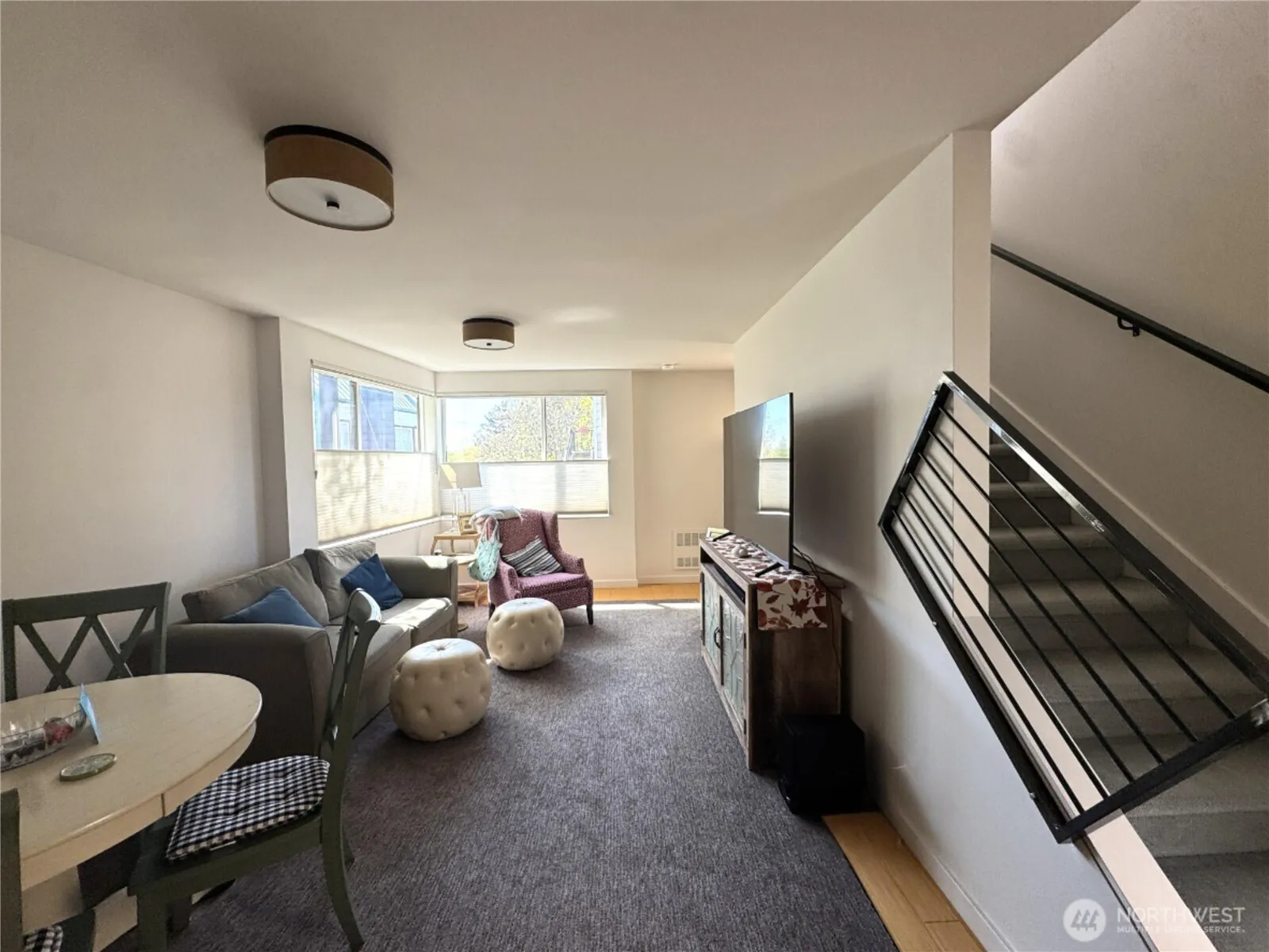 Available now! One block from Greenlake Park! Modern and well maintained certified built green townhome. The lower level has two bedrooms and one full bath. The main floor living room has bamboo floors, kitchen with breakfast bar, stainless steel appliances, and guest bath. The top floor primary suite has a large bedroom with walk-in closet, ensuite bathroom with walk-in shower, conveniently located laundry, and views of Green Lake from the bedroom and deck. Includes one-off-street parking space. Enjoy all park and lake activities, cafes, and shops and easy access to major highways and public transport.