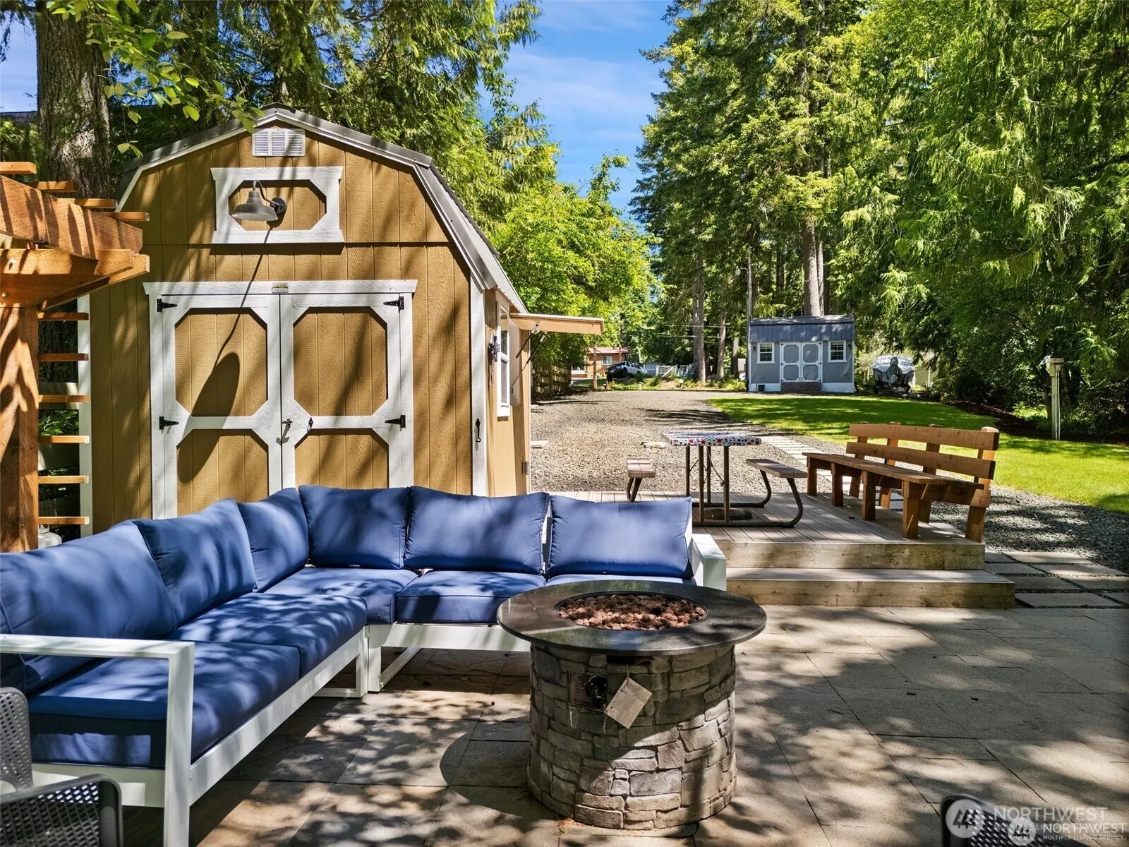 Turn-key lakefront retreat on Little Timberlake ready for immediate enjoyment. This fully improved property features utilities in place and easy plug-in access from day one. Two finished cabin-style buildings provide flexible use, including one with a bedroom and ¾ bath and a separate kitchen cabin. Exceptional RV setup with multiple graveled spaces, two dump stations, two 50-amp hookups, one 30-amp hookup, and water connections. Enjoy the composite deck, improved shoreline, private dock, gas fire pit, and outdoor movie screen. Sold furnished with paddle boat and outdoor seating. Timberlake Community Club offers parks, picnic areas, boat launch, and saltwater access.
