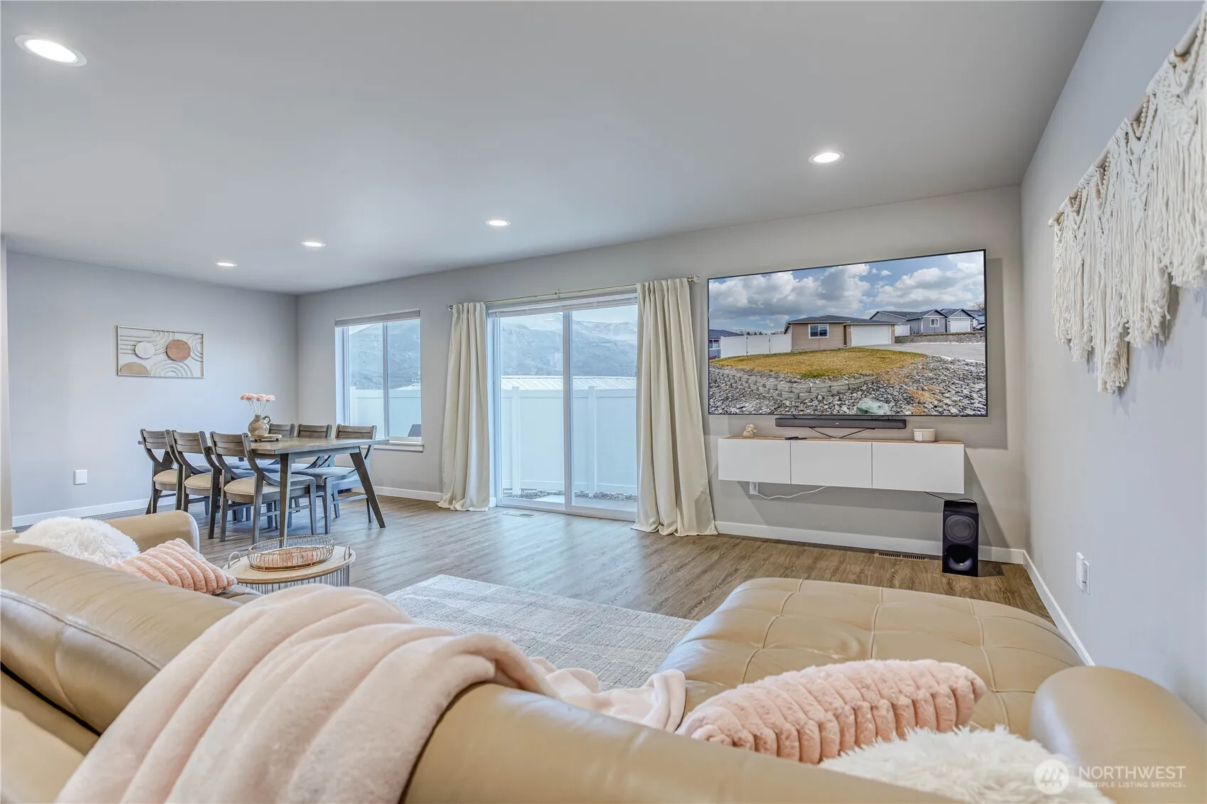 Experience easy, single-level living in this stunning 1,382 sq ft home. The modern open-concept design seamlessly connects the kitchen, dining, and living areas, creating an inviting space filled with natural light. Sleek quartz countertops and high-end appliances, including a Bosch refrigerator, elevate the kitchen’s style. Custom top-down/bottom-up blackout blinds offer both privacy and comfort throughout the home. Located on a 0.12-acre lot, this 3-bedroom, 2-bath residence offers beautiful mountain views and a peaceful atmosphere. Situated in a welcoming community, this property perfectly balances modern luxury with a serene setting. This is a rare opportunity for a move-in-ready home that prioritizes both function and beauty.