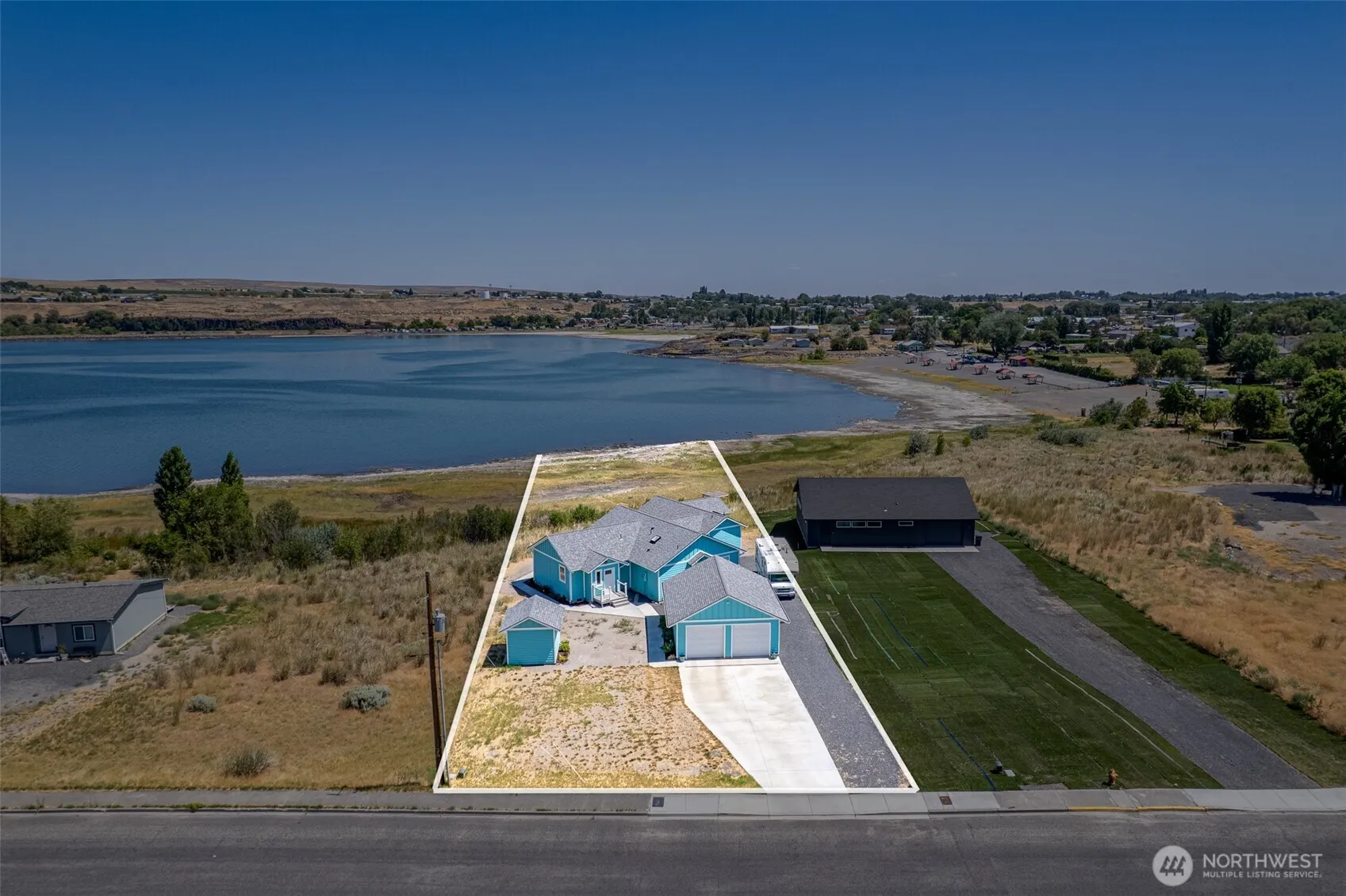 Must see! Waterfront property on quiet, peaceful Soap Lake is hard to come by. This lovely home has been specially situated on this large, 30,056 sq ft lot to take full advantage of the lake views. From the expansive deck to the picture windows in the great room and primary bedroom, you will enjoy this tranquil environment, watching the beautiful sunrises and the nesting birds. The kitchen lends itself to fixing gourmet meals while guests sit at the large, quartz counter top island watching your magic. Double car garage, storage shed, RV parking and natural habitat for nature’s wildlife make this property very comfortable year around. Own your private access to the Healing Waters of Soap Lake. Call today!