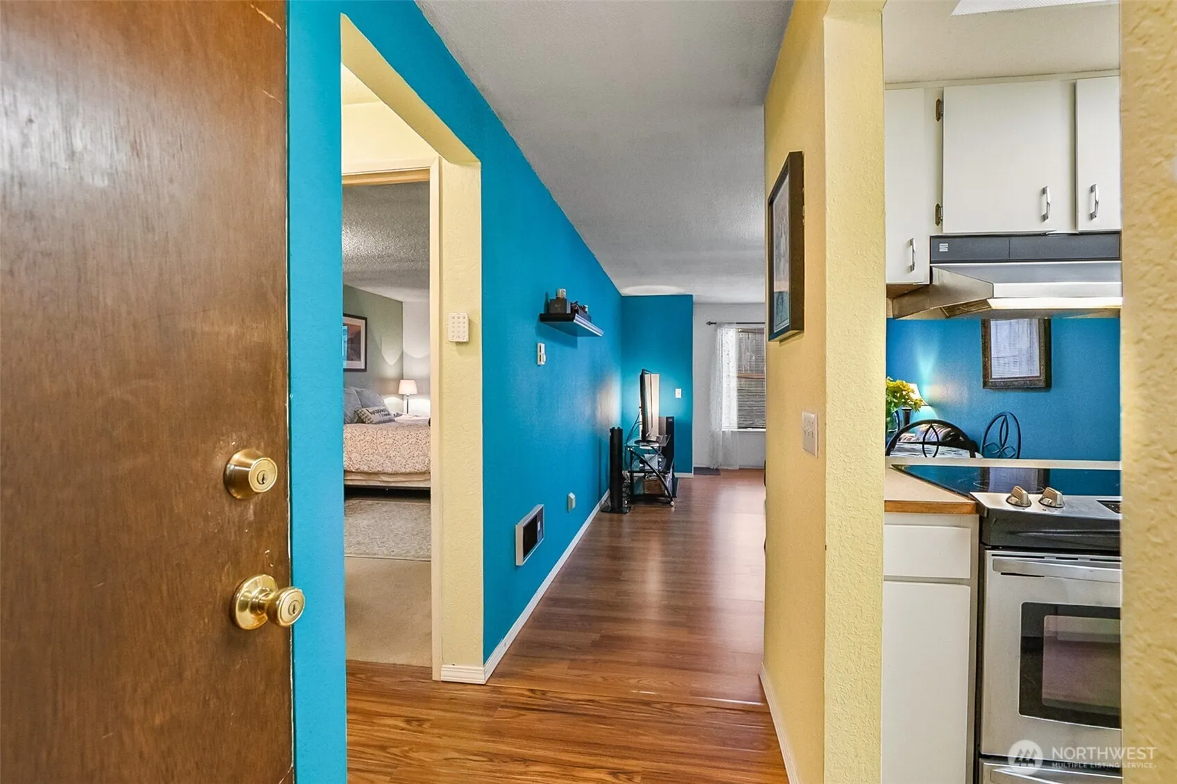 Conveniently located in the Holly Gardens community of South Everett, this maintained ground-floor 1-bedroom, 1-bath condo offers effortless, zero-step entry and true move-in-ready living. The thoughtfully designed floor plan features durable laminate flooring throughout the living and dining areas, a comfortably carpeted bedroom, and a recently updated 2024 water heater for added peace of mind. A full-size in-unit washer and dryer provide everyday convenience. Enjoy indoor-outdoor living with a private deck—perfect for morning coffee or evening relaxation—and the unique opportunity to purchase the home FULLY FURNISHED and WELL STOCKED, making it ideal for an owner-occupant or turnkey investment. The secure building includes a private lobby entrance, locking mailboxes, a dedicated storage locker, and one assigned parking space located close to the entrance. This well-managed 28-unit complex offers a newer roof, no rental cap, and no special assessments, providing flexibility and long-term value. The HOA dues of $350 per month include water, sewer, and garbage. Ideally located close to Boeing, major employment centers, shopping, and dining, this condo presents an excellent opportunity for comfortable homeownership or a strong investment. A must-see property.