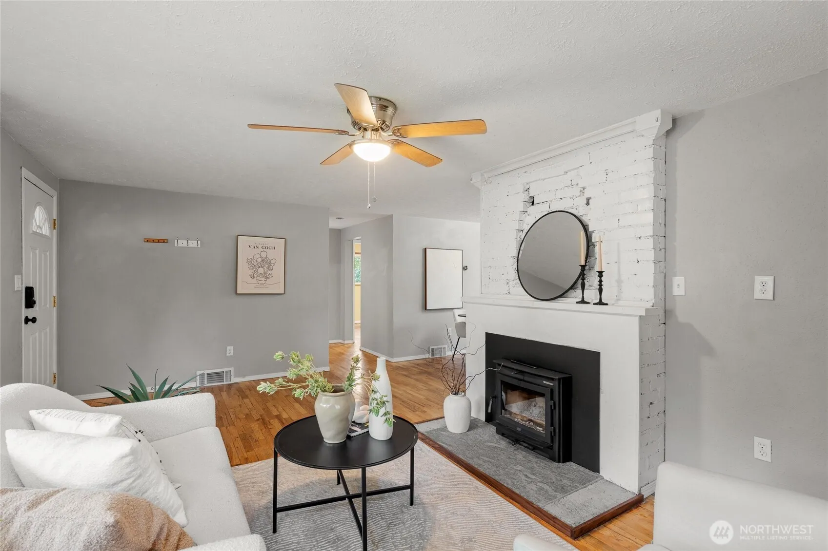 Set on a quiet Everett street, this home offers space, privacy, and opportunity. The layout flows comfortably from one room to the next, creating an easy, welcoming feel throughout. The primary bedroom opens directly to the backyard deck, adding a natural indoor-outdoor connection. A fully fenced yard with patio and mature trees provides a calm setting to relax or gather. Inside, 1,460 sq ft on the main level features a wood-burning fireplace, new carpet, and newer appliances, with a 600 sq ft partially finished basement ready for your ideas. A two-car detached garage with EV hookup adds modern convenience, all on two city parcels totaling 12,197 sq ft.