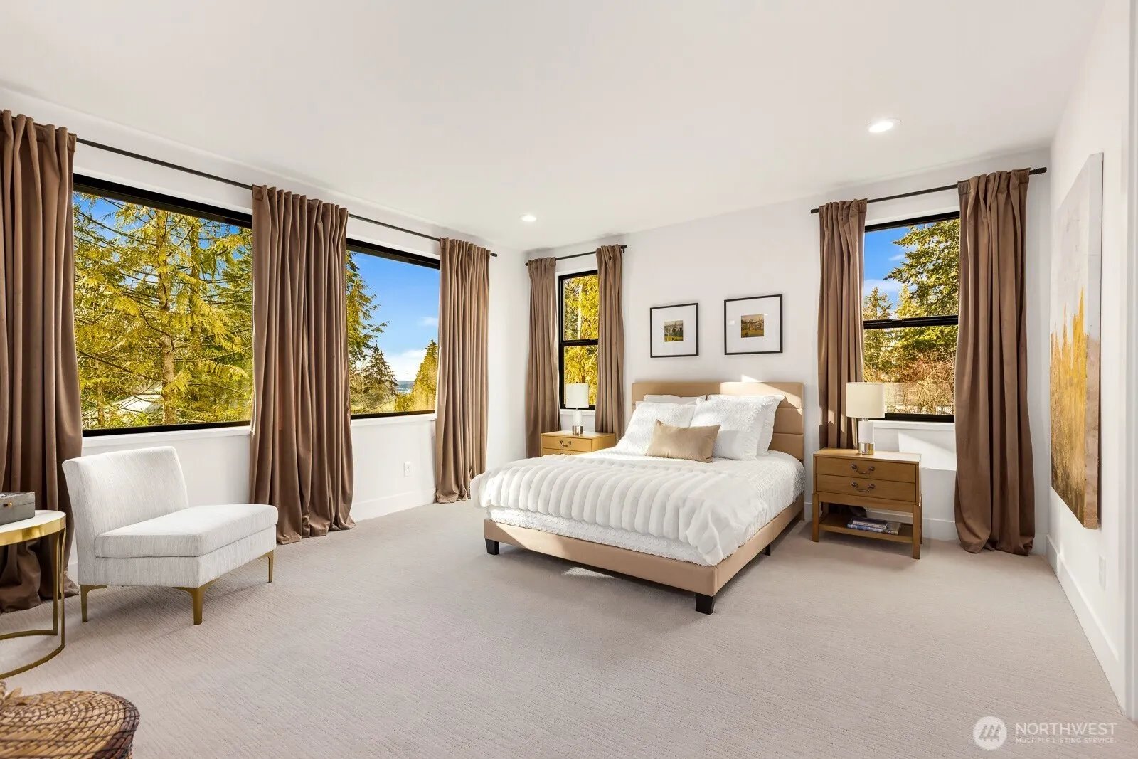 An exceptional opportunity to own a brand-new custom 1-story residence in the heart of historic Steilacoom, designed and built by award-winning Connie Kay Design. Offering over 3,000 sq ft of refined living, this bespoke home features a fully hand-drawn, one-of-a-kind floor plan blending luxury with intentional livability. Soaring vaulted cathedral ceilings and expansive black-framed windows bathe the interiors in natural light while capturing territorial and peekaboo Puget Sound views. The elegant single-level layout is ideal for both daily living and entertaining. Complete with timeless high-end finishes and a three-car garage, this rare rambler delivers elevated Pacific Northwest living just minutes from the ferry, beach, and waterfront.