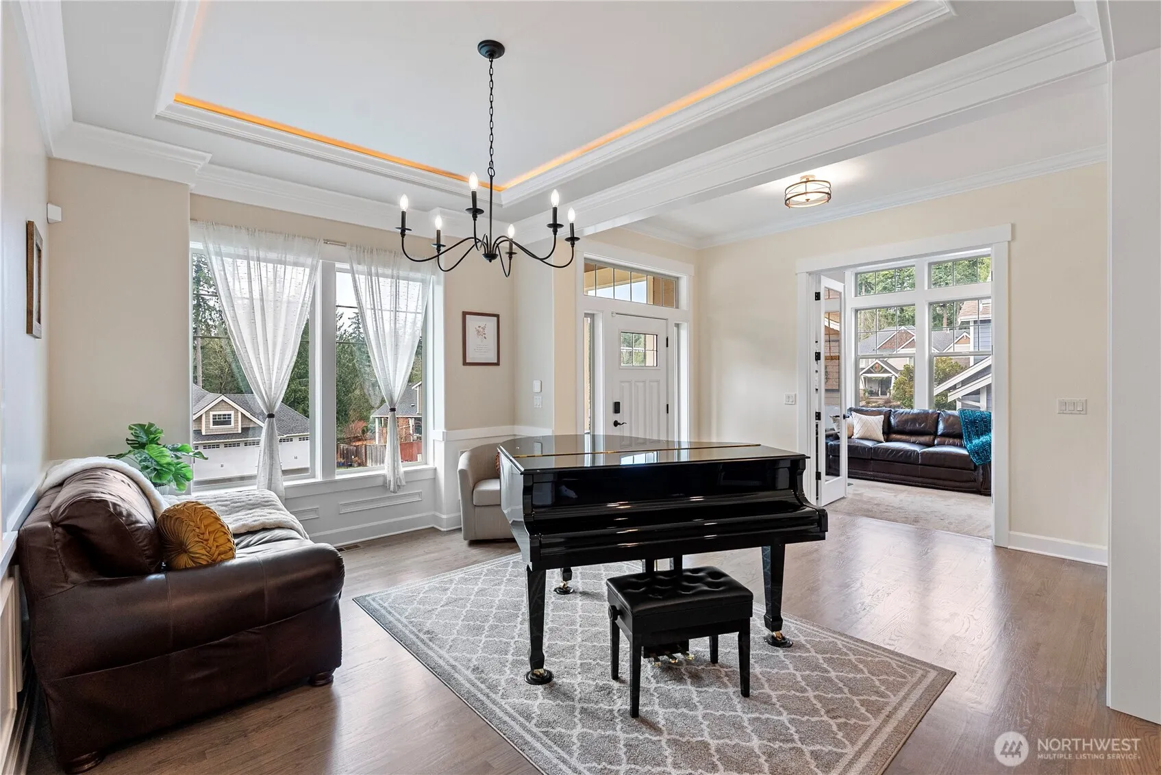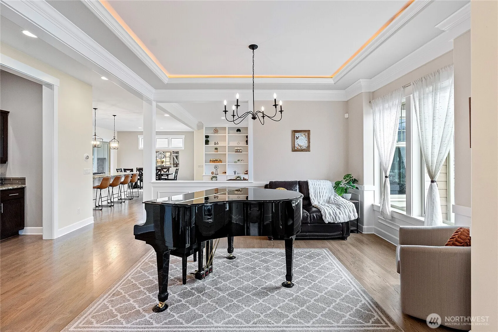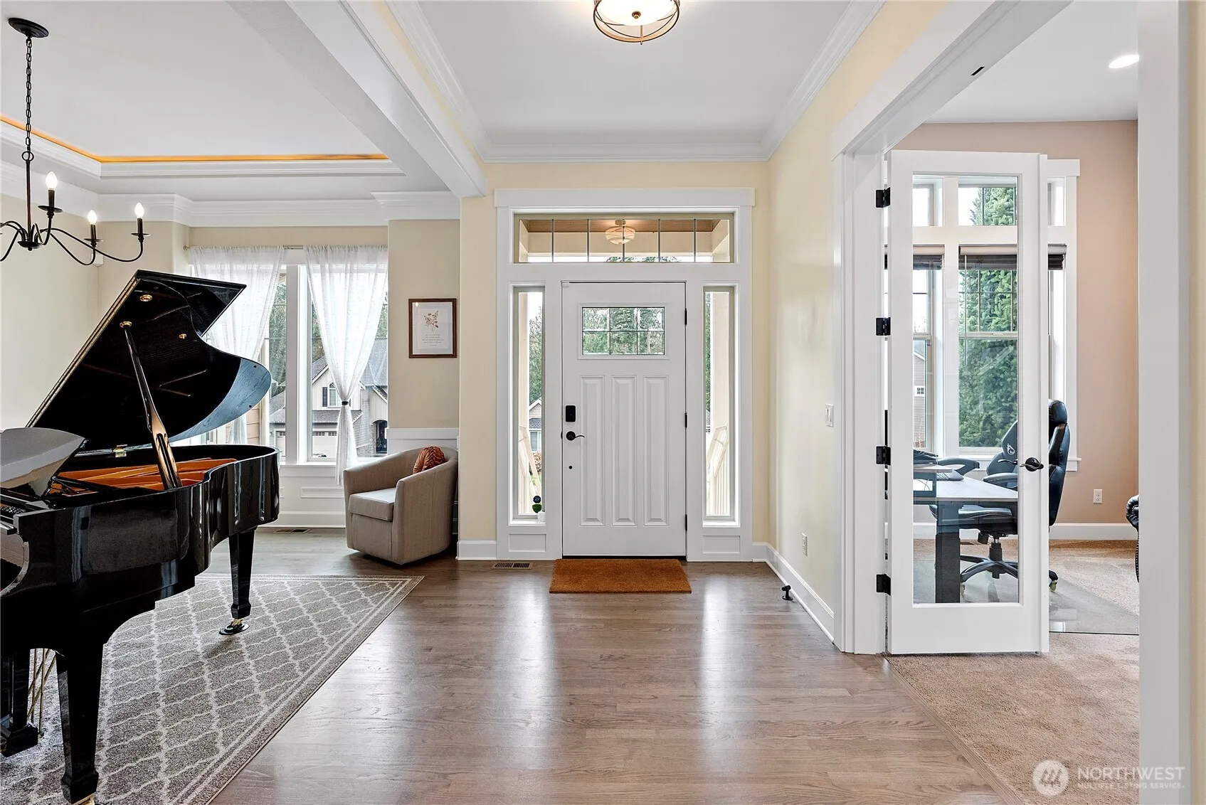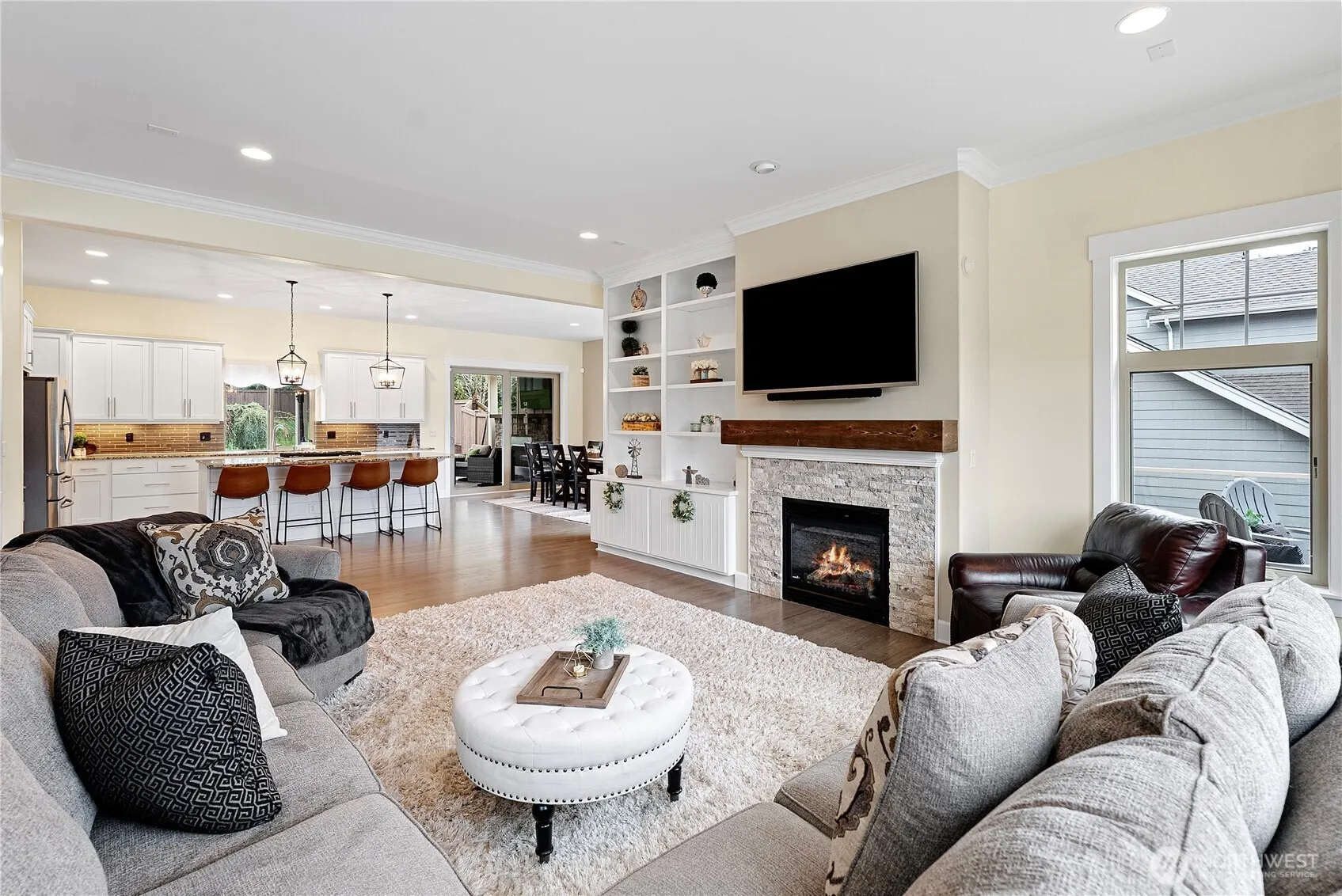 Timeless elegance & modern living converge in this beautiful Chelsea Park home. 10′ coffered ceilings, hardwood floors & abundant natural light. Built for entertaining with formal dining room, wet bar w/wine fridge & chef’s kitchen w/granite counters, GE Cafe appliances, oversized island & giant addtl eat-in space. Covered patio, outdoor fireplace, and grilling shed extends living space in all seasons. Primary suite w/vaulted ceilings, soaking tub & oversized walk-in closet. Don’t miss the bonus space and basement level bedroom. Easy access to Hwy 16 and situated in the Peninsula School District. Fenced backyard, 3 car garage w/shop space. 2 year old 50 year roof and whole home generator.