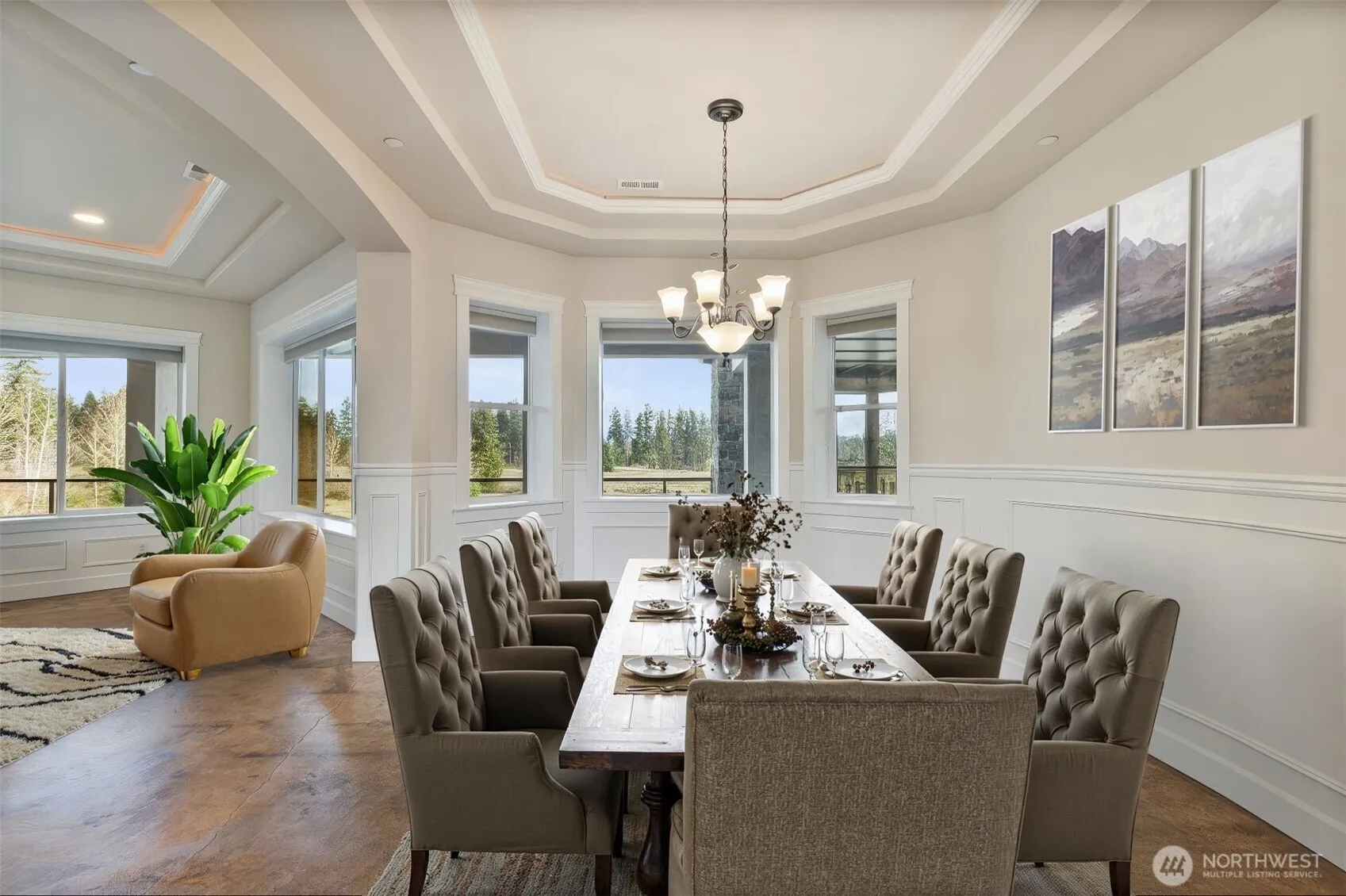 Beyond a private gated entry, this exceptional estate offers refined one-level living on over 10 acres with framed views of Mt Rainier. Built with Insulated Concrete Form ICF construction, the residence delivers superior energy efficiency, structural strength, fire resistance & remarkable quiet rarely found in custom homes. The main level features a luxurious primary suite, chef’s kitchen, integrated concrete terraces with outdoor kitchen & fireplace overlooking the mountain. The daylight lower level includes a secondary kitchen, theater, gym, game room & guest bedroom. Every bedroom offers a private bath. Additional amenities include irrigation, fully equipped greenhouse, oversized shop, covered RV parking & separate two bedroom residence.