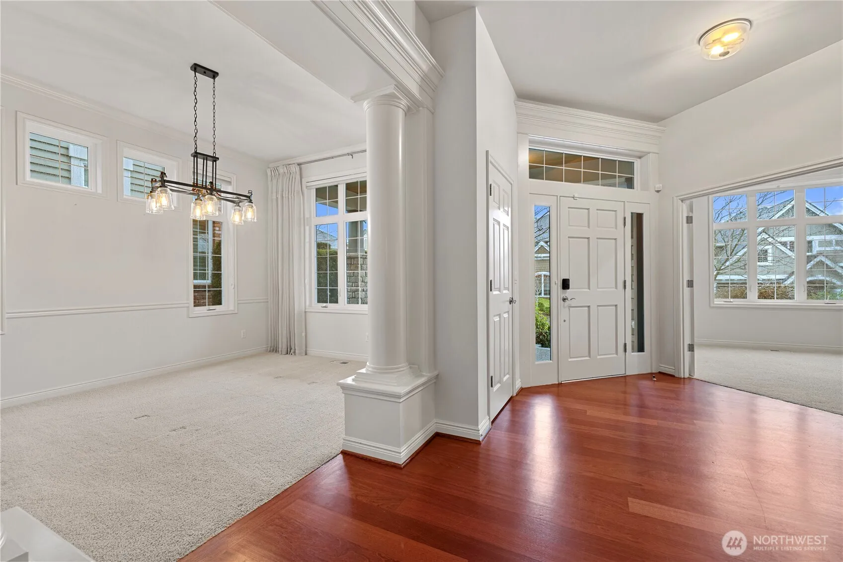 4 bedroom + main floor den and upper level bonus area. Just steps from Daphne Park in the Wisteria neighborhood of Issaquah Highlands. Main level den features glass French doors, all 4 bedrooms upstairs, plus a large bonus room. Covered porch and refinished hardwood floors. Spacious kitchen with Thermador appliances, 2 ovens, new refrigerator and slab counters opens to great room with gas fireplace and built-in shelving, leading to a covered patio—ideal for entertaining. Grand owner’s suite with extended sunny sitting area, large primary bath with soaking tub, oversized shower, and walk-in closet. Includes tankless water heater, new furnace and AC, and 2-car garage with EV charger.