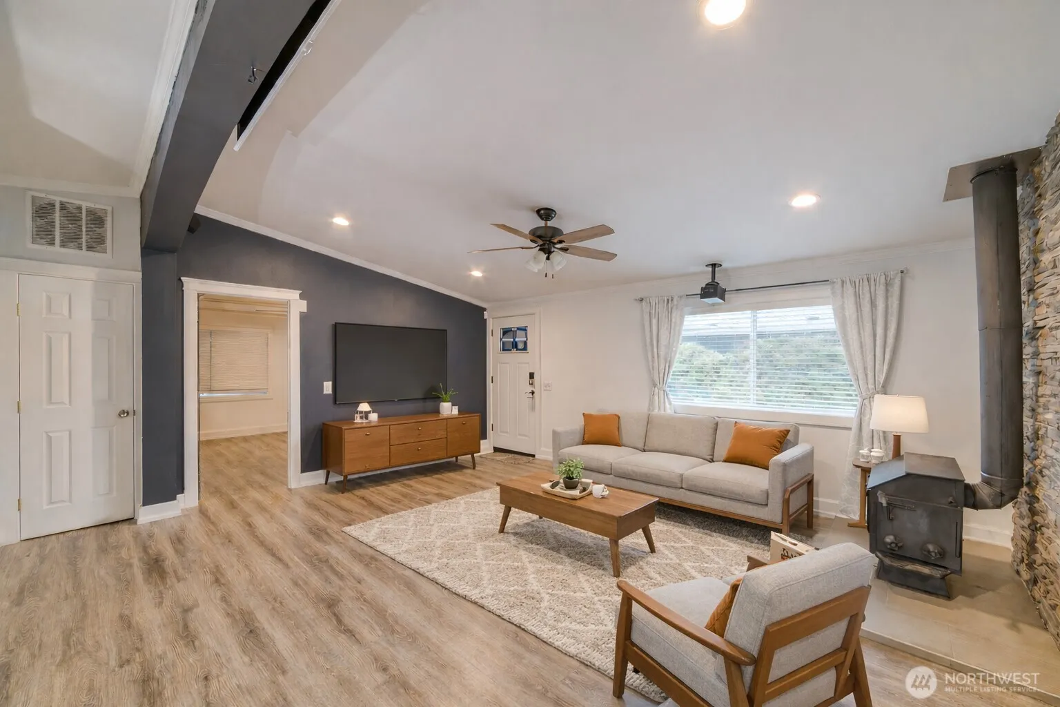 This beautifully maintained 3-bed, 2-bath manufactured home is located in the desirable College Park community of Lea Hill and offers 1,244 sq ft of comfortable, well-designed living space. Highlights include vaulted ceilings, great natural light, a cozy wood stove, and beautiful flooring throughout. The spacious kitchen provides plenty of room to cook and gather, while the private patio/deck is perfect for relaxing or entertaining. Two assigned parking spaces and a Community Recreational Area to add to the appeal. Conveniently located near shopping, schools, and major routes—an excellent opportunity to own a beautiful home in a well-run park. Some photos of home are virtually staged.
