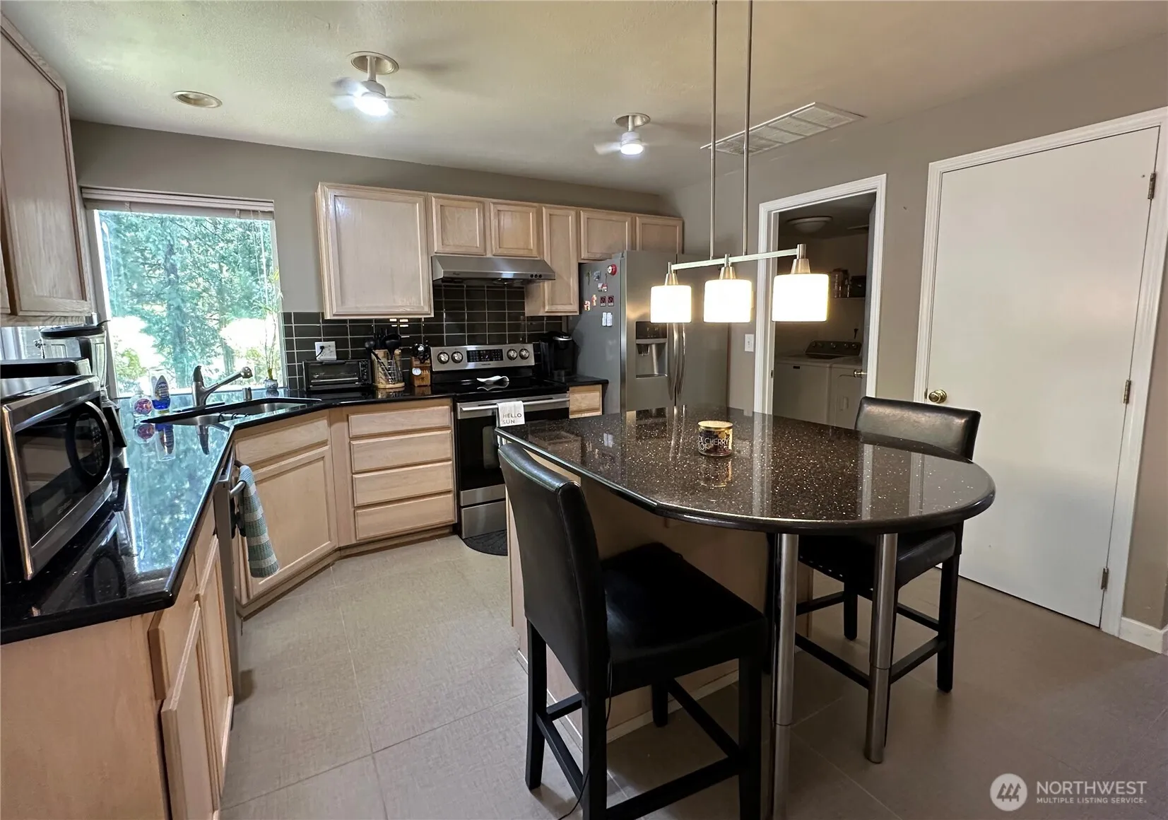 Beautifully upgraded 4 BR/2.5 bath + bonus area/den home on private 2.4 acre lot. Built in 1998, this classic home provides 2,140 sq. ft. of flexible living space. Gorgeous new Maple hardwood floors throughout home. Kitchen features maple cabinets, granite countertops & sliding glass door that opens to a large, private sundeck. Inviting family rm has a fireplace w/an elegant mantel & granite surround. Formal living & dining rms. Spacious Primary suite has an adjoining bathroom w/soaking tub & shower. Big picture windows provide peaceful views of this special natural setting. Private land offers expansive play spaces, garden area, shed and RV parking. Just 20 minutes to Redmond and close to shopping, schools, parks & scenic trails.