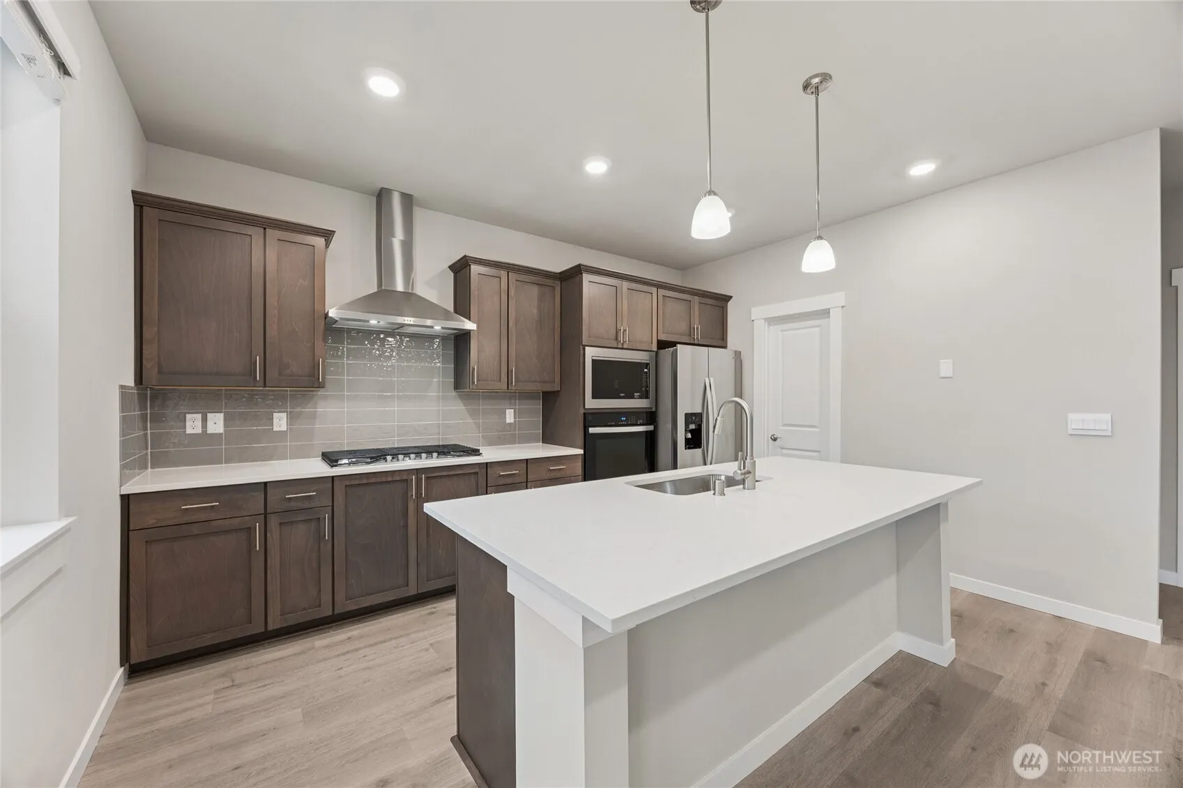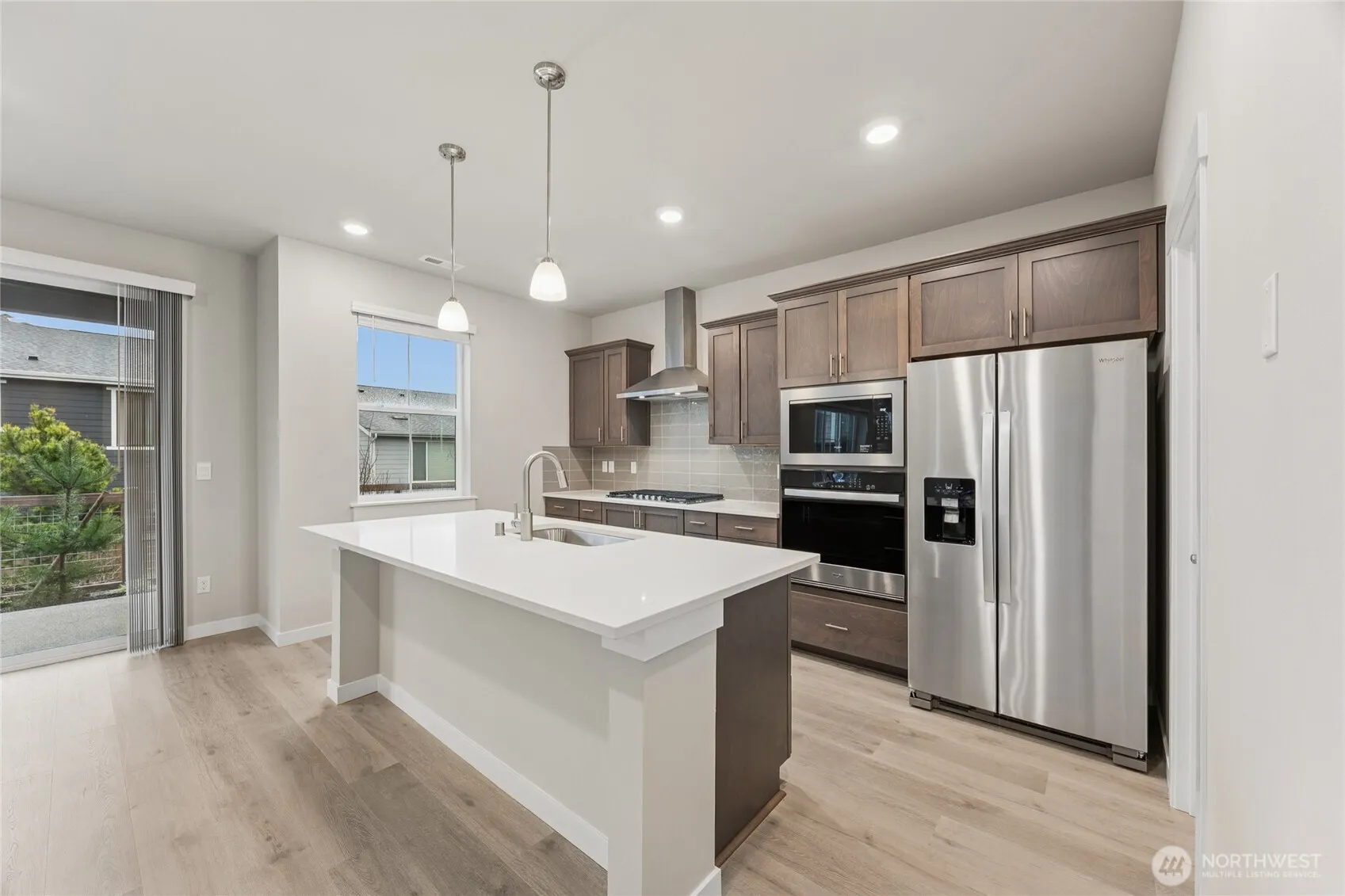 WALKOUT BASEMENT home by D R. Horton at Skylit Ridge provides thoughtfully designed spaces, perfect for entertaining & daily living. The kitchen, dining, and great room all flow seamlessly with the covered deck. The main floor also features a convenient guest suite. The lower-level features a large rec room with bed & bath and a covered patio to make this daylight basement design check all the boxes. Additional highlights include GAS cooktop, central A/C, heat pump, smart features, and a fully fenced and landscaped yard. Buyers must register their broker on first visit, including open houses. Ask about our SPECIAL RATES!