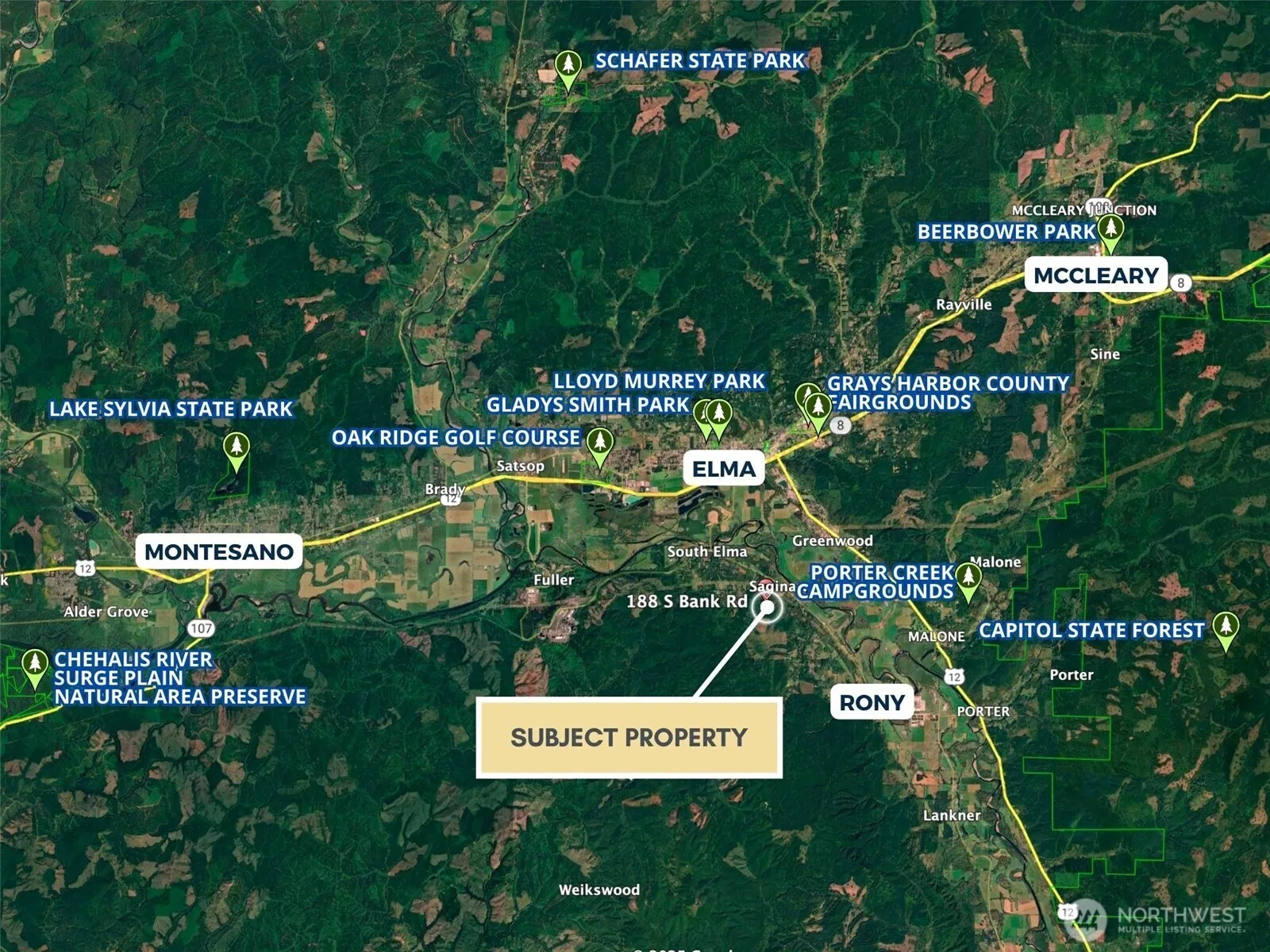 REDUCED! 50.78 acres consisting of multiple parcels with merchantable timber. Mostly level terrain, set over 700 feet off the road, offering privacy & development flexibility w/ G-5 Zoning allowing lots as small as 5 acres. Since there are existing parcels, a Boundary Line Adjustment is also a possibility. Soil types on the property are generally favorable for septic installation & neighborhood wells are around 100 feet deep, but buyer should verify to their satisfaction. Ideal for a private estate, multi-home development, or compound-style property — but also well-suited for recreational use, hunting, & timber investment. Timber may be harvested now to help offset costs or held for future value. Located about 7 minutes from downtown Elma & Highway 12.