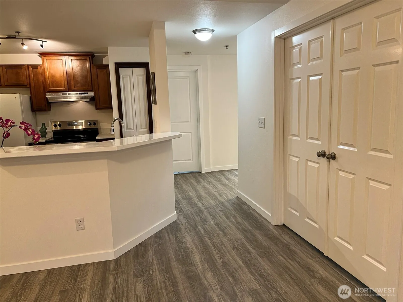 Charming 2 bed, 1 bath condo in private gated community with no rental cap. Excellent Investment/Rental property. Spacious living room with wood-burning fireplace. Dining area opens to kitchen with pantry and breakfast bar. Large primary bedroom with walk-in closet; second bedroom generously sized. Full bath with new vanity and updated fixtures. Fresh Paint, New flooring in entire unit. In-unit W/D, one designated parking space, and access to clubhouse, pool, sauna, and fitness room. Set back from Hwy 99, minutes to Boeing, Everett Mall, shopping, and dining. Easy access to I-5/405. Two household pets under 30 lbs allowed.