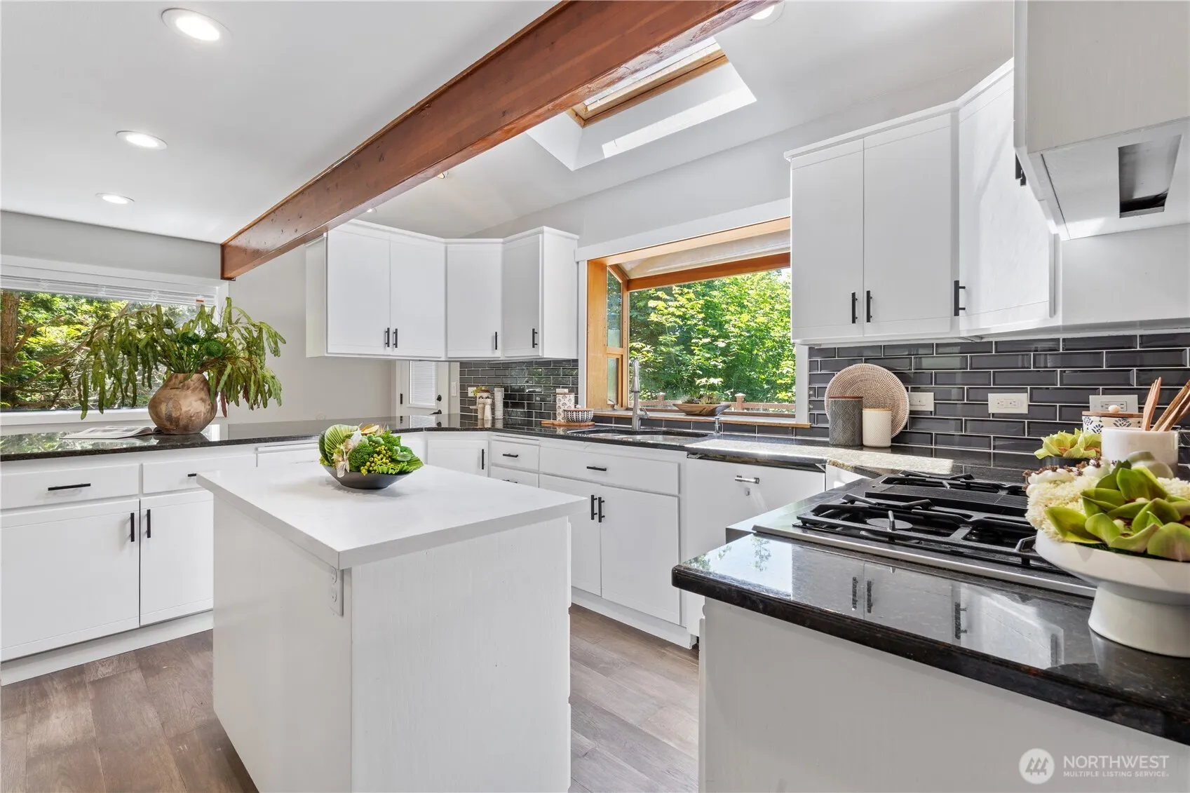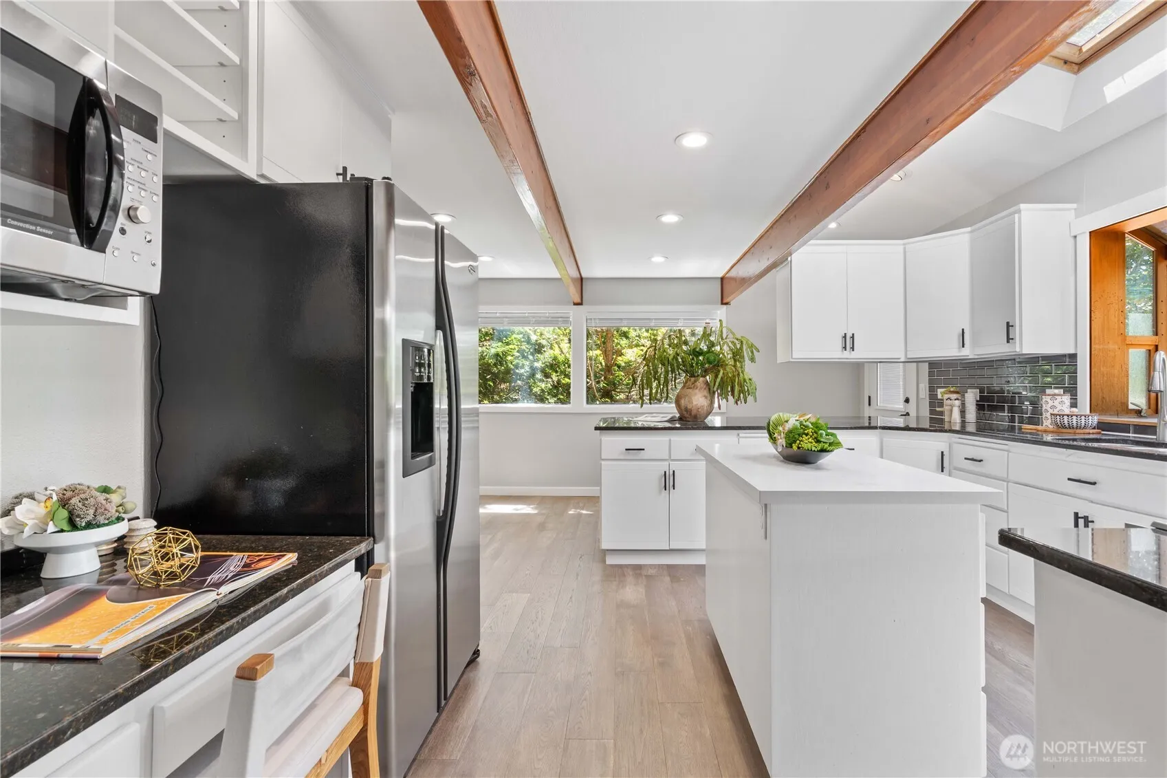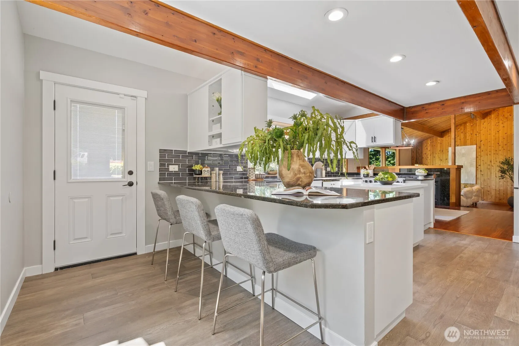 Location, location, location! Nestled on a quiet cul-de-sac in the desirable Woodridge neighborhood, this beautifully updated east-facing home offers privacy just minutes from downtown Bellevue. Top-rated schools and easy access to I-90, I-405, Microsoft, and the Bellevue business core. Features include vaulted ceilings, skylights, updated kitchen and baths, new flooring, fresh interior/exterior paint, new electrical panel, and new deck. Flexible layout with main-floor bed/bath, upstairs primary + 2 beds, and lower-level MIL suite with separate entry—ideal ADU potential. Dual laundry rooms and A/C for year-round comfort. Backs to a serene greenbelt—your private retreat!