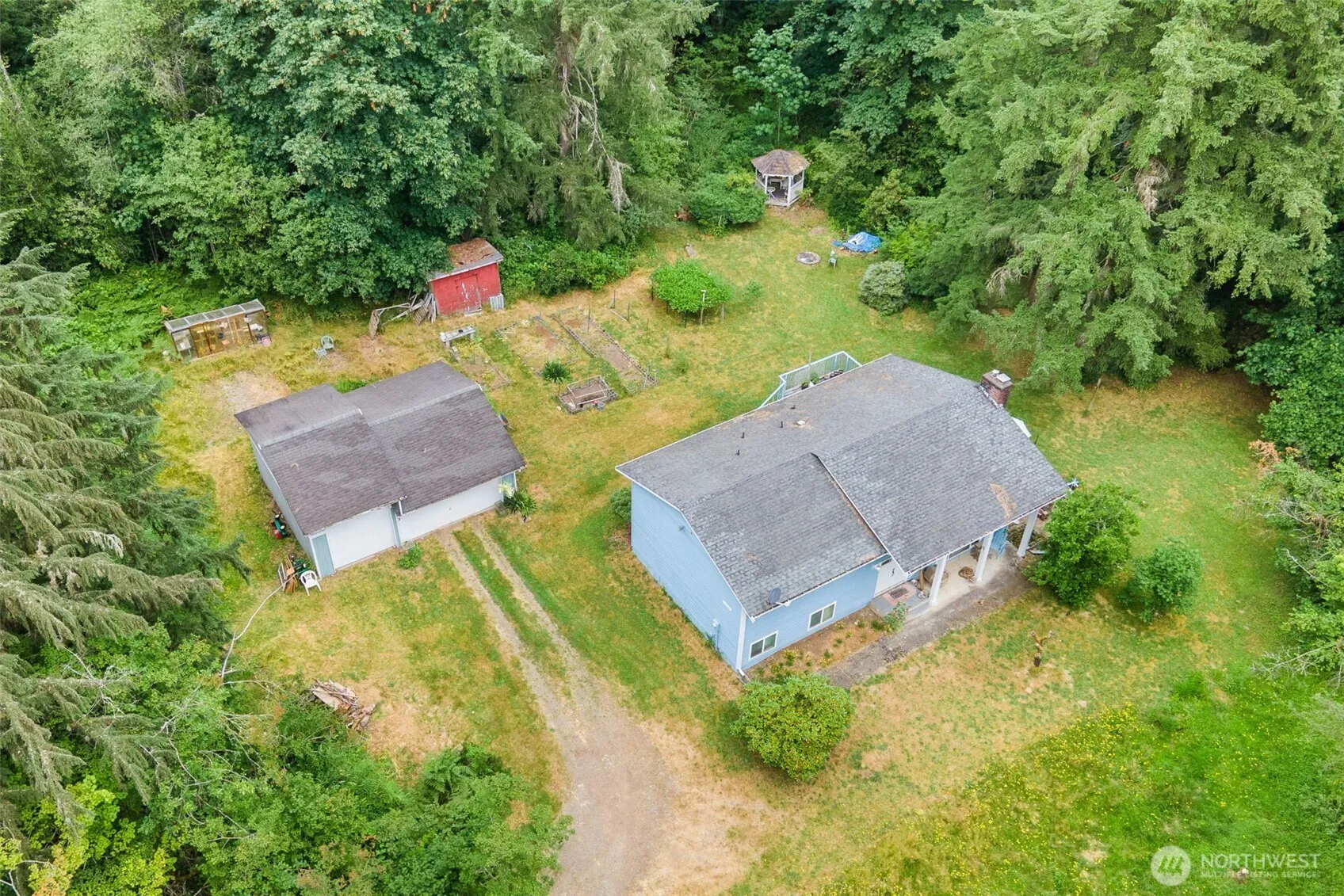 Your Private area of Duvall! Enjoy the Country, Treed Acreage w/Trails, Convenient to Big City Activities~ House w/Oversize Garage on 1 Acre will Welcoming Your Vision & Touches! Circular Floorplan, Easy for Entertaining! Wood Frplc Up/Pellet Down, Upper Spacious Rooms could be Opened up or reconfigured for your vision & desires! Cosmetic Or Redo will make this Home Shine! Private Garden already features Fruit Trees, Berries, Grape Vines, Perrenials & more! Recreate the Pond, Enjoy Gazebo, Your own Private Trails! OVERsized Garage features a 3rd Bay for RV/Boat/Toy/Shop. Loads of Overhead Storage!. New Transit Shuttle close by.. Buy Both Now.. Develop Extra Later ?! Tranquil Setting either way! What;s YOUR Dream?