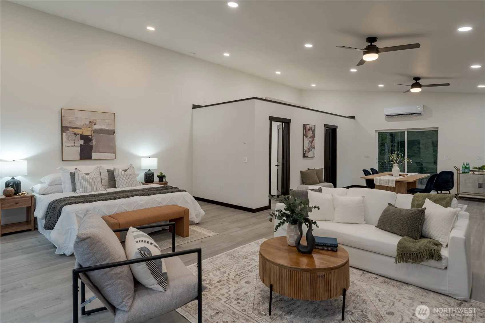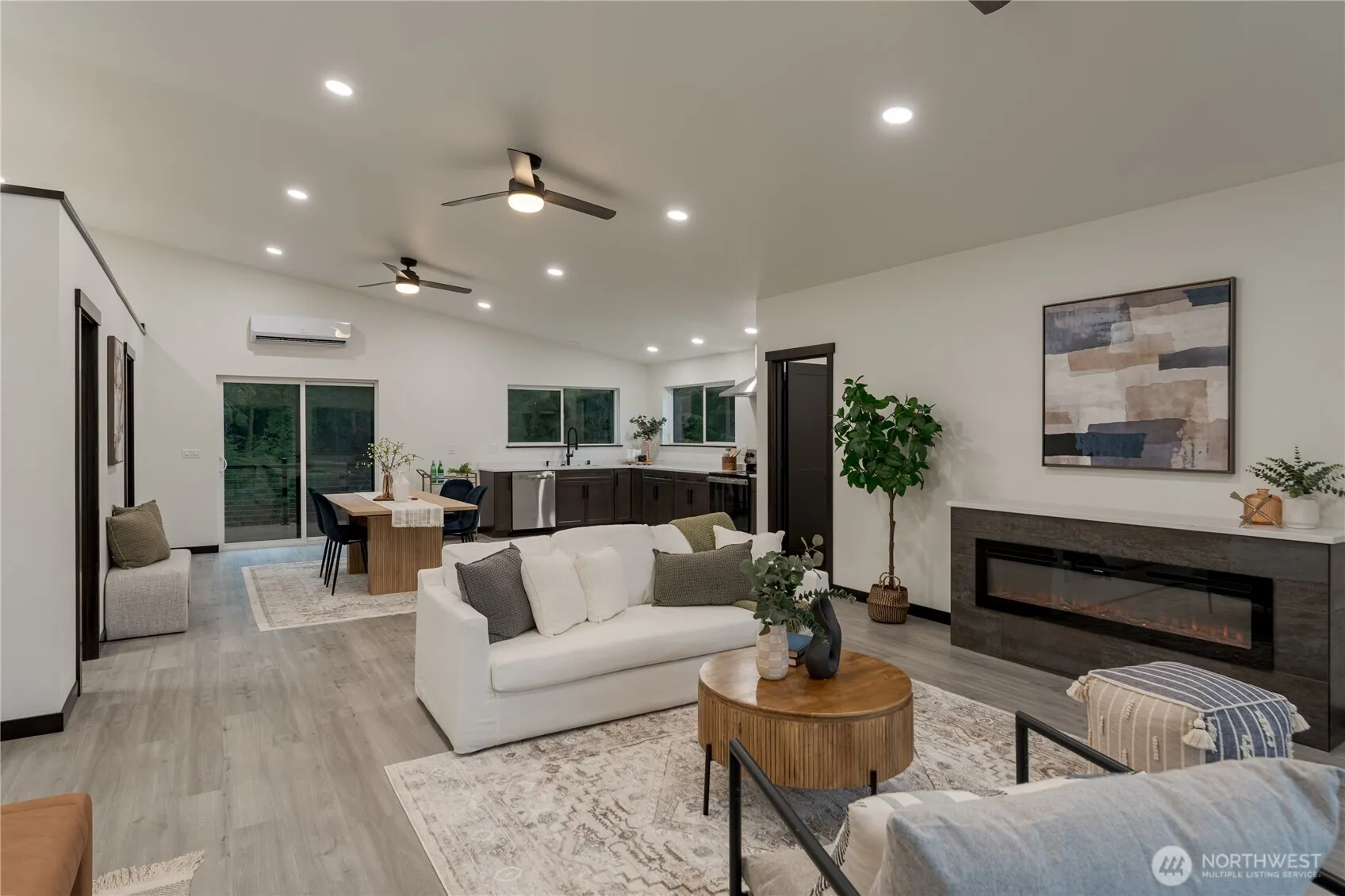 Eight acres of gated, private land at the base of Mt. Pilchuck — with panoramic mountain views, established trails, a natural stream with waterfall, and permits already in place for a full second 3-bedroom residence. The newly completed main structure is a modern two-story design with a high-bay garage on the ground level and a refined open-concept studio above — finished with quartz countertops, engineered hardwood, vaulted ceilings, and radiant heated floors. The existing well, power, and septic are sized to support two full residences — making this one of the rare properties in Snohomish County with true compound potential, completely permitted and ready to build. Additional features include heat pump mini-splits, electric fireplace, solar panels, Starlink internet, hot tub hookups on the front deck. Wired for generator. Fully staged and move-in ready. Limited cellular service near the property — a GPS coordinate is provided for navigation. Once you arrive, you’ll understand why. Entrance is approximately 0.9 miles east of where Google Maps directs—look for the listing sign or use GPS coordinates: 48°06’00.4″N, 121°49’09.4″W.
