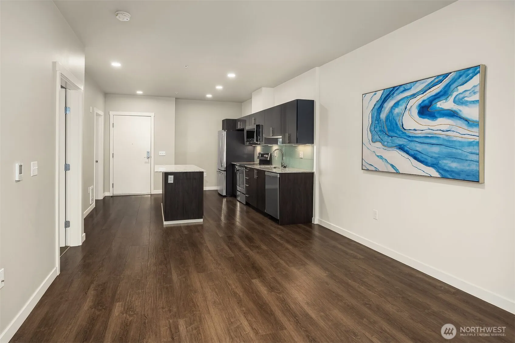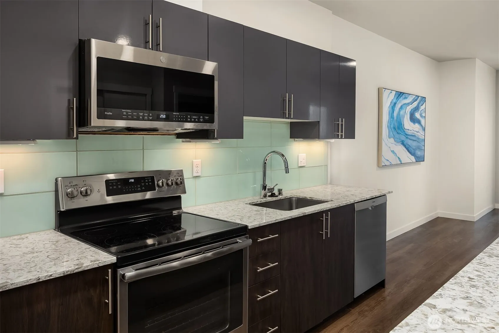 Modern luxury east-facing condo offering a bright, open living experience with unobstructed city views and a private balcony. The thoughtfully designed interior features quartz countertops, stainless steel appliances, a spacious kitchen island, sleek cabinetry with under-cabinet lighting, a custom-made bedroom closet, and newly replaced dishwasher and microwave. Expansive windows bring in abundant natural light while maintaining privacy. Residents enjoy a refined rooftop retreat with open seating, BBQ area, fire pit, and pet area, plus concierge service, clubhouse, dog wash station, bike storage, and secured garage parking. Exceptional walkability with easy access to Bellevue Square, shopping, dining, cafés, and nearby parks. No rental cap.