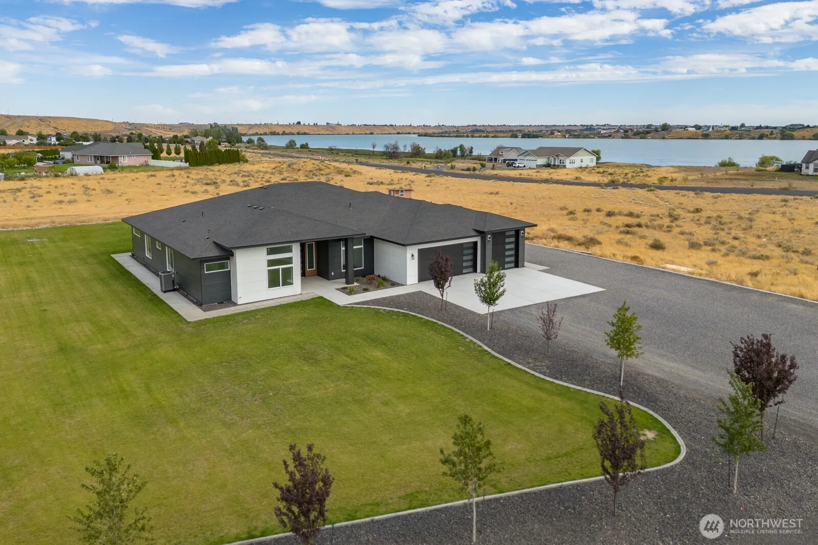 Experience luxury living in this exquisite 3,810sqft new construction, custom home on a 2.23 acre lot w/ partial stunning Lake view. The open concept layout accentuated by shy of 12’ ceiling in great rm & kitchen w/ an abundance of natural light. Offering grand foyer, formal dining rm, office, guest suite w/ 3/4 bath, bonus rm which can be 5th bedroom, mud rm. Chef’s kitchen boast custom cabinets, quartz countertop & walk-in Butler’s pantry. Engineered hardwood throughout, A/C, irrigation sprinkler sys, central vacuum & all bathrooms w/ heated elegant tile flooring. Primary suite w/luxurious bathroom offers spa like oasis w/soaking tub, full tile walk through shower. Minutes to many amenities & plenty of room for boat, RV & your dream shop!