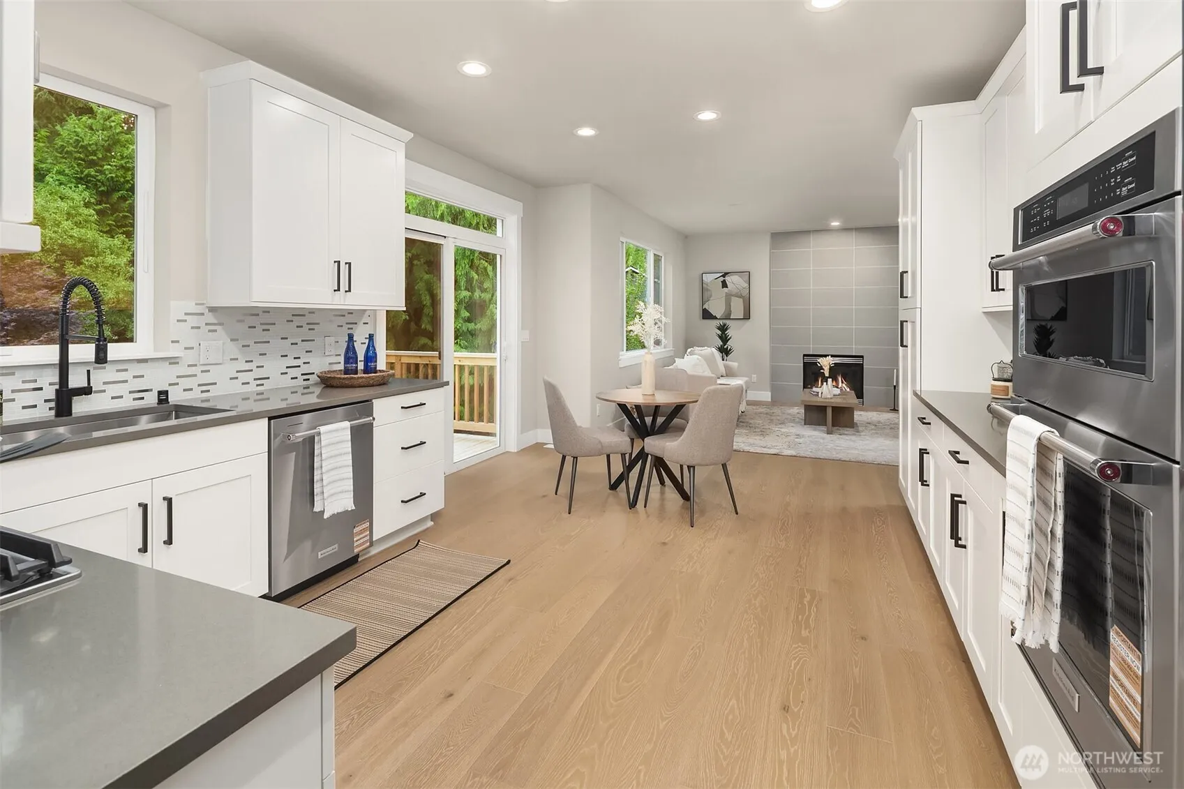 Nestled in Snohomish’s Kensington Estates neighborhood this studs-out 4-bed remodel is sure to impress. 3-car garage + separate rear garage for storage or toys. Thoughtfully designed w/ soaring ceilings & wide-plank oak hardwoods throughout the main. Every detail upgraded by Arcadia Homes: new light fixtures, hardware, flooring, kitchen, baths, deck, & driveway, showcasing their impeccable craftsmanship. Kitchen features white shaker-style cabinetry, quartz counters & sleek built-in appliances. Vaulted ceilings in spacious Primary Suite complete w/ skylight, WIC & 5-pc bath. Lower level includes rec room, full kitchen & bed —perfect for multi-generational living. Expansive backyard w/ deck & patio ideal for entertaining. Lake Stevens SD.