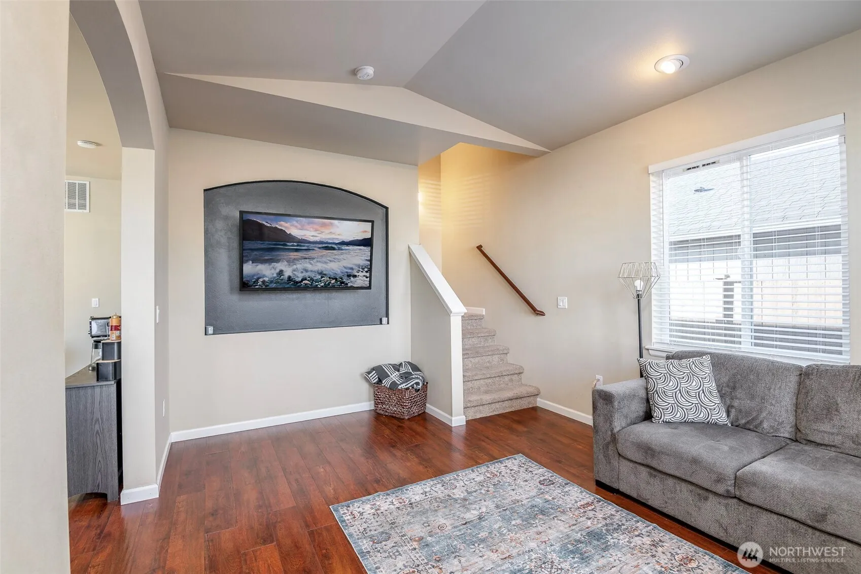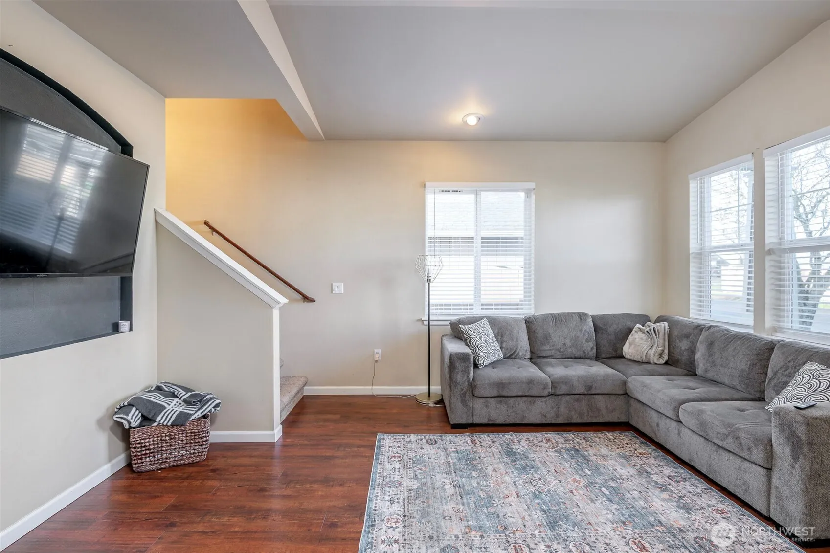 Welcome to this modern home located in the sought after Tahoma Terra community, offering 3 bedrooms and 2.5 baths. The main floor primary suite features a spacious ensuite bath and walk-in closet. Upstairs are two additional bedrooms, a full bath, and a generous hallway walk in closet. The open kitchen offers ample cabinetry, tile countertops, a slate backsplash, and all appliances stay. Enjoy the inviting covered front porch and an oversized single car garage with extra storage. A beautifully maintained community park welcomes you at the entrance of the neighborhood. Conveniently located about 30 minutes from JBLM, with shopping and amenities nearby.