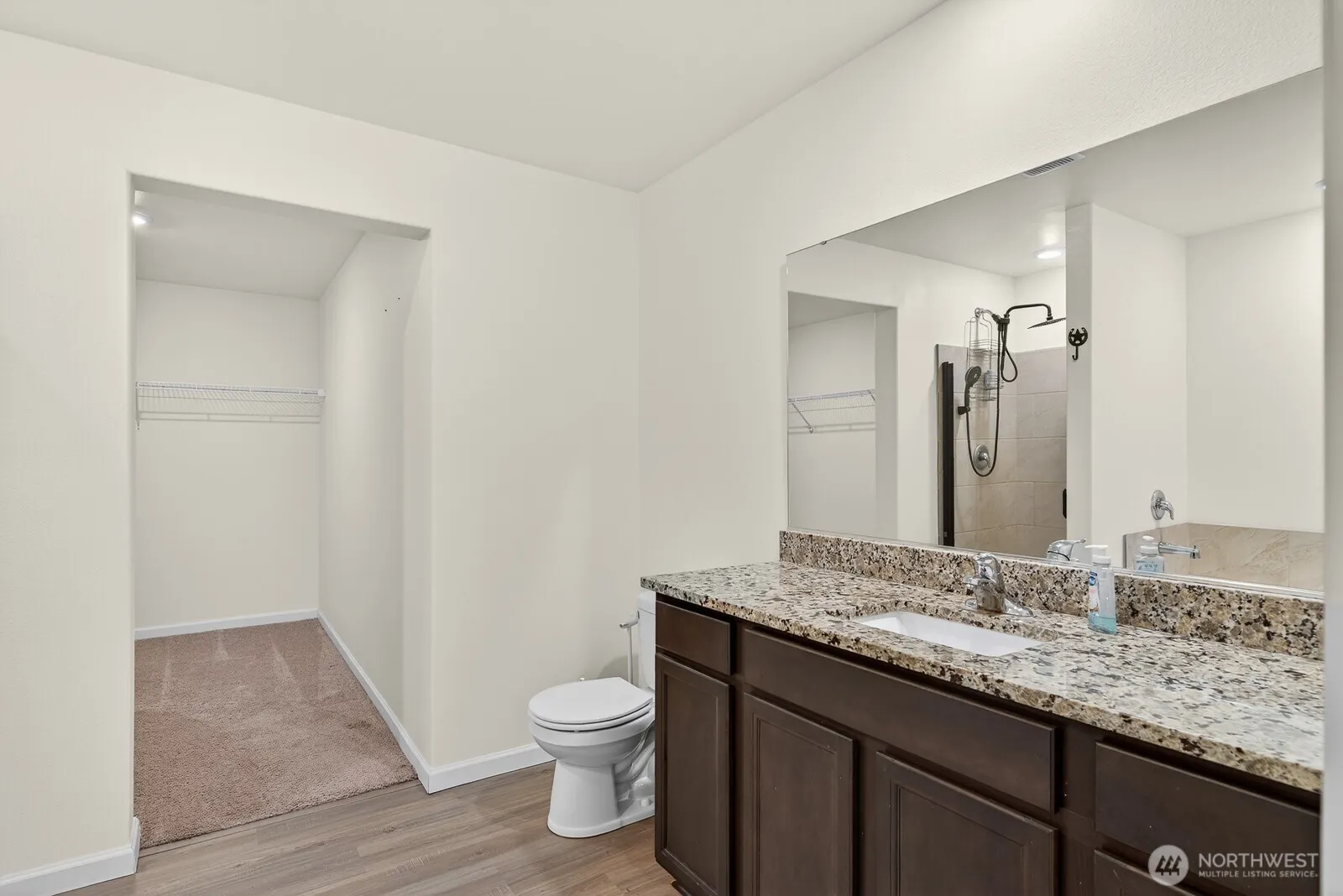Welcome to this 2022 built home in Cedarhome. Just minutes to downtown Stanwood shops, restaurants and easy access to I5. From the moment enter, you’ll love the bright, open-concept layout that makes the home feel both spacious and inviting. The kitchen is truly the heart of the home, featuring granite countertops, stainless steel appliances, crown-molded cabinetry, and durable plank flooring — perfect for everything from quiet morning coffee to hosting friends for dinner. Upstairs, the primary suite feels like a private retreat. Enjoy a large walk-in closet, a relaxing soaking tub, separate shower, and a spacious vanity that makes busy mornings easier. Two additional bedrooms and a versatile loft give you flexible space for a home office, playroom, or cozy movie nights. Step outside to your covered back patio — ideal for year-round BBQs — and a fully fenced backyard with room to garden, play, or simply unwind. Situated on a desirable corner lot, you’ll appreciate the extra yard space. If you’ve been looking for a move-in ready 3-bedroom home in Cedarhome with modern finishes, open living space, and a functional floor plan — this one checks all the boxes.