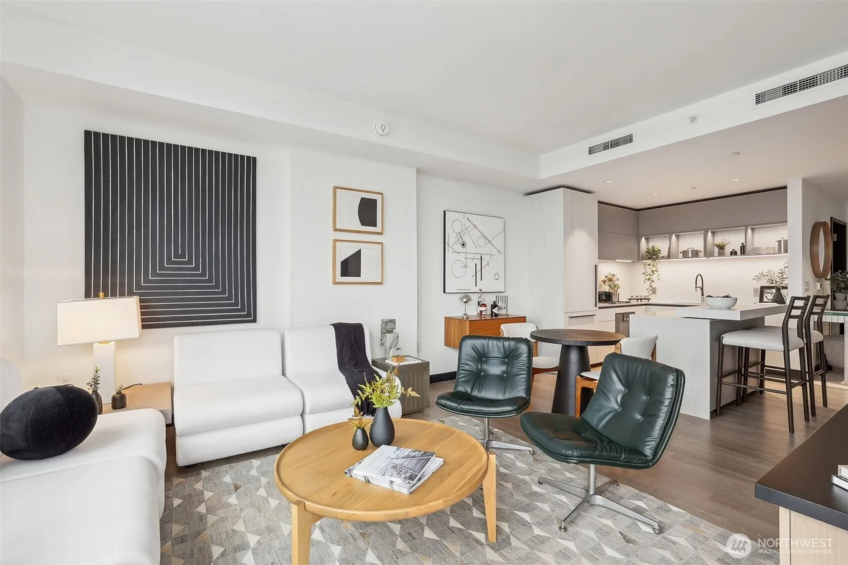 Nestled in the heart of downtown Bellevue, this brand new luxury condo offers a refined one-bedroom, one-bath retreat crafted for modern living. Smart and functional, the residence boasts top of the line fixtures from world renowned brands, blending elegance with practicality. Thoughtfully crafted interiors feature harmonious tones, clean lines and discreet textures, creating a balanced environment that nurtures well-being. Beyond your private sanctuary, enjoy amenities including a fitness room, stylish lounge and dog lounge. The building’s modern lobby welcomes you with dramatic lighting, a living wall and a striking fireplace – signaling your arrival at a place where luxury and wellness converge seamlessly. Photos Representative.