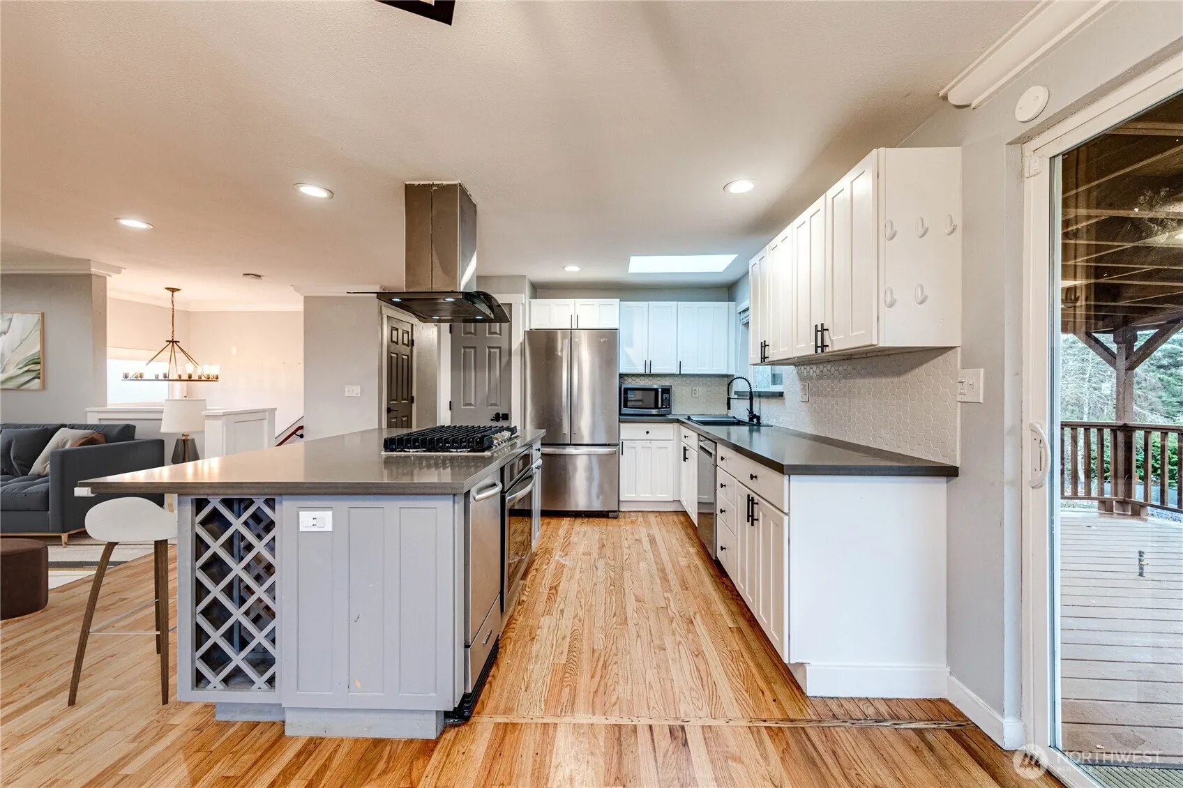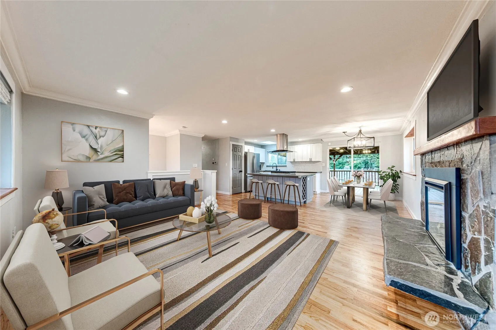 Beautifully updated view property overlooking Lake Serene! Private dock & beach rights shared with only 3 homes! Enjoy a glass of wine or BBQ year-round from covered deck while gazing out on the water. Take short stroll down private lane to swim off dock or paddle board in lake! Entertainers dream w/ remodeled kitchen w/ quartz counters & huge island. Gorgeous refinished hardwoods. Full separate living space downstairs with fresh bright & clean paint! Second kitchen downstairs & 2 fully finished studios w/ power provides flexibility for all your needs – work from home, multi-generational living, or rental income! Stay cool year-round with A/C. Wired for generator & EV charger. Fully fenced landscaped yard & RV parking. Private outdoor shower w/ hot water. Excellent Mukilteo Schools. Pre-inspection attached.