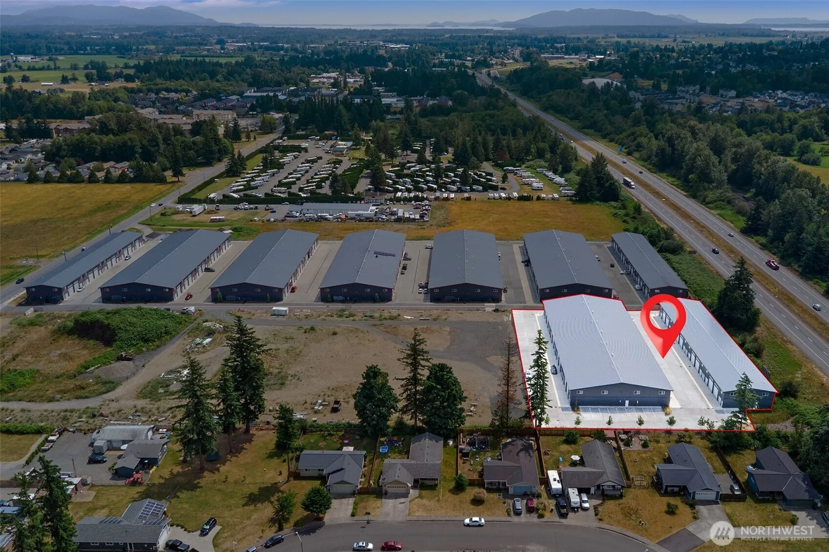 Flexspace North Condominium offers a well-located 2,200 SF unit with quick access to I-5. Each unit features two spacious bays, a bathroom with shower, a generous loft, and two overhead doors (14′ x 14′ and 9′ x 8′) for flexible access. Built with efficiency in mind, construction includes durable metal siding and roofing, high-quality insulation (R38 ceiling, R25 walls), 75,000 BTU heater, a fire sprinkler system, concrete floors, windows for natural light, utility sink, 50-amp RV outlet, and Comcast Business wiring. The complex provides over 50′ wide aisleways for easy maneuvering, secure gated access via keypad or remote, and dedicated addresses with individual mailboxes.
