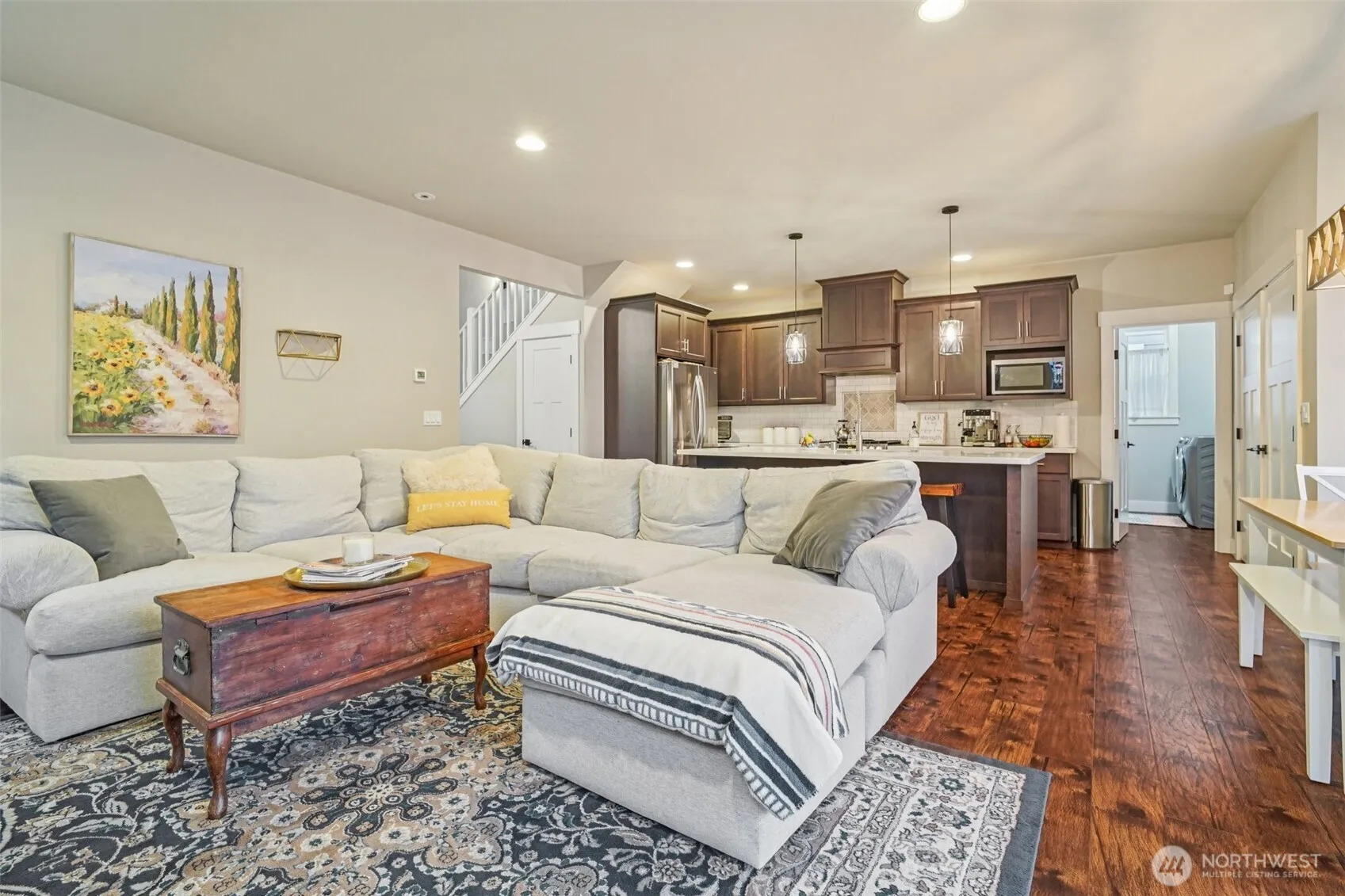 Welcome to this beautifully maintained home located in the Elk Meadows Community, offering 4 bedrooms, 3 bathrooms, and 2,171 sq ft of thoughtfully designed living space. The bright, open floor plan is filled with natural light and flows seamlessly into the kitchen, making it ideal for everyday living and entertaining. The kitchen features custom 42” wood cabinetry, quartz countertops, a large island, upgraded stainless steel appliances, and a tankless water heater. Spacious bedrooms, including a primary suite on the main level, provide flexibility for a variety of living needs. Enjoy a low-upkeep, fully fenced and landscaped yard along with scenic mountain views. Conveniently located near shopping, dining, walking trails, and amenities