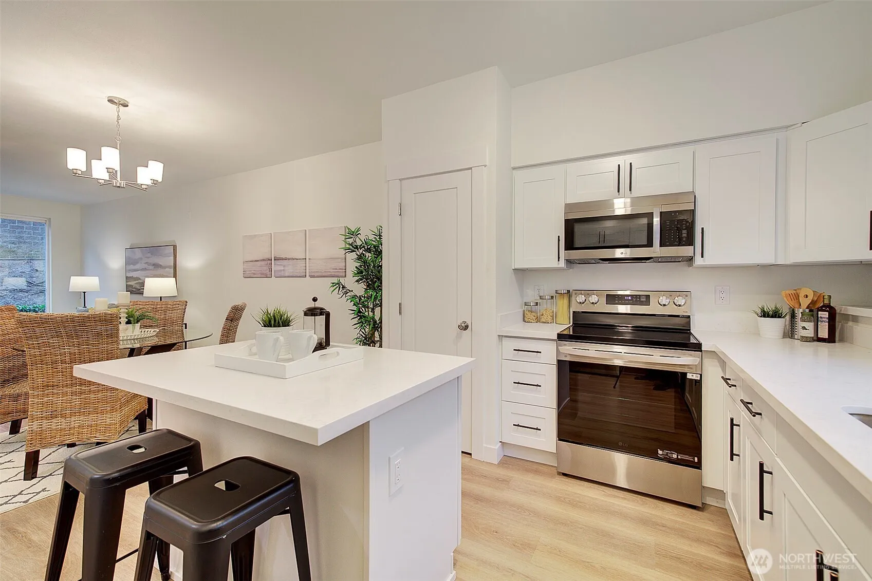 Beautiful remodeled and ready to welcome you home, this serene Townhouse, in desirable Wildwood, will check all your boxes! Main level, open floorplan features spacious living and dining area, with cozy fireplace, walkout patio and new flooring. Updated kitchen boasts gleaming quartz countertops, new stainless appliances, tons of storage and natural light! Upper level is a peaceful retreat. Find a huge Primary bedroom, boasting vaulted ceiling and double closets + En Suite bathroom & bright and spacious 2nd bedroom and full bathroom, with washer & dryer! New flooring, lighting, kitchen cabinets, countertops and appliances + more! Tandem garage and driveway parking, close to commuter routes/lightrail and Alderwood amenities and restaurants! Community features pool, hot tub, exercise room and clubhouse. No rental cap and pet friendly! Welcome home!