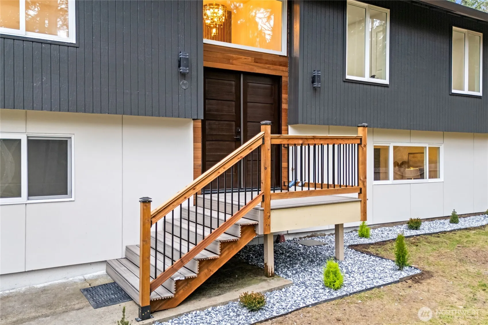 Welcome home to this stunning 3-bedroom, 2.5-bath residence nestled in a coveted enclave along Murphy Drive in Gig Harbor. This charming storybook home offers the perfect balance of peaceful, rural living with the convenience of being just minutes from Uptown Gig Harbor, Highway 16, and premier shopping. Thoughtfully designed for both entertaining and everyday comfort, the spacious family room features a classic wood-burning fireplace and an inviting bar area complete with a wine cooler—ideal for gatherings and relaxed evenings at home. Beautiful updates throughout include fresh interior and exterior paint, a custom-designed kitchen showcasing quartz countertops, stylish tile backsplash, stainless steel appliances, and ample cabinetry. The living room is warm and welcoming, highlighted by a real wood fireplace insert with an eye-catching accent wall. The upper level hosts three generously sized bedrooms and two bathrooms, including a serene primary suite with a luxurious custom shower adorned with sophisticated tilework. The lower level offers a convenient laundry room and half bath. Outdoor living is equally impressive with a large entertaining deck and a 12×16 storage shed. Ideally located near major shopping destinations including Metropolitan Market, parks, and dining. This exceptional home offers comfort, style, and location—an opportunity not to be missed.