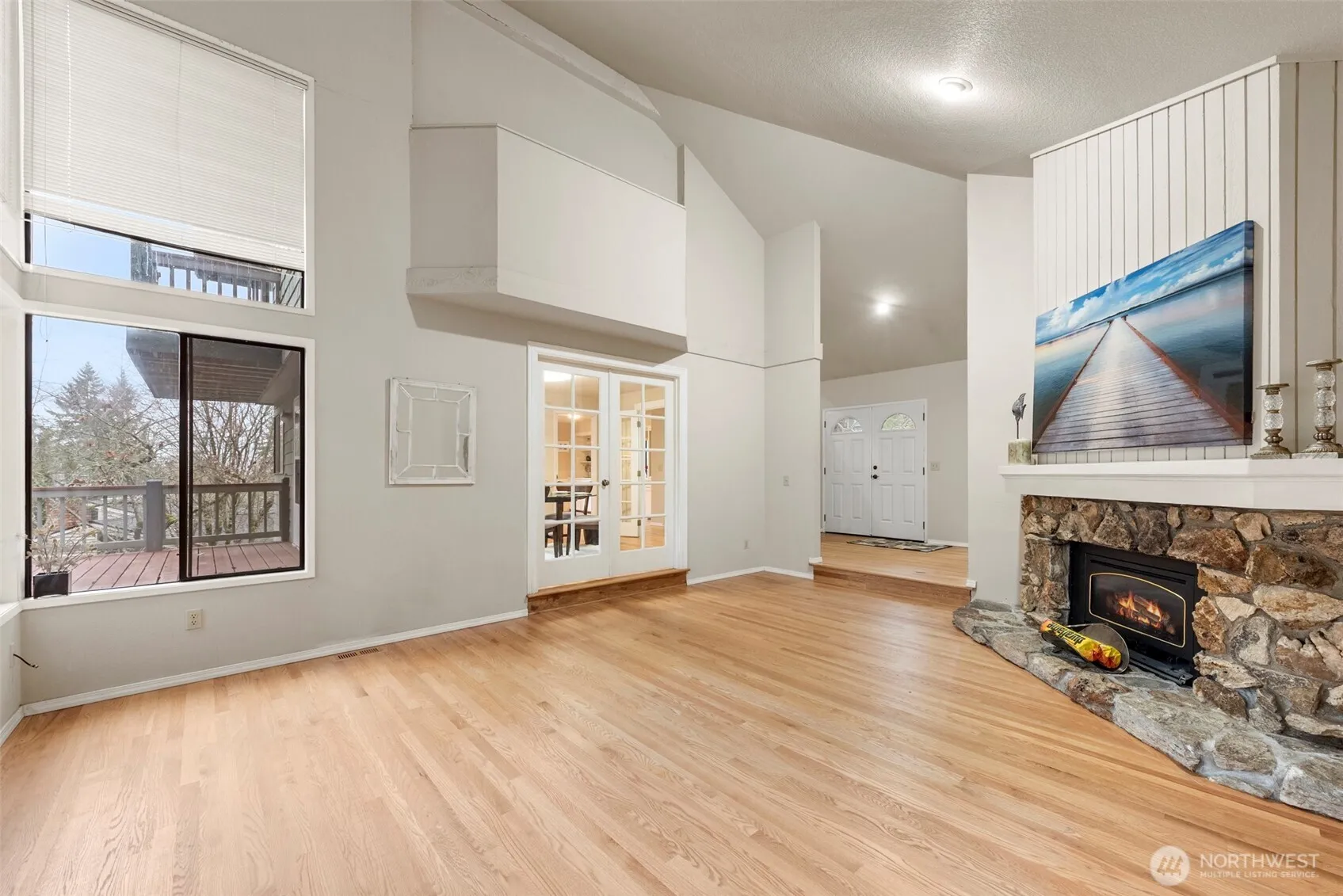 3 BDs 1 bonus RM, 2.5 BA contemporary home with large windows, supper private, adjacent to Whispering Heights. Updated open kitchen w/ large core counter & dinning space, wet bar. Recent updated SS appliances, new fridge in 2022, Blank new range, new furnace in 2024. Remodeled bathrooms, refinished and well maintained oak hardwood & lvp floor. Some territorial views, low maintenance level backyard w/ new fence, deck. Separate dining & high ceiling living RM. One fireplace at every floors. Upper floor has master suite and adjoining office or nursery RM , private deck. Lower level has two BDs 1 full bath, plus rec RM or third BD, laundry RM. Attached spacious 2 car garage with flat driveway, don’t miss the additional secured storage space on top of garage. Mature landscaping. Convenient to I-90, 405, shops, park-n-ride. Bellevue School District (Spiritridge Elem, Tillicom Mid, Newport high)