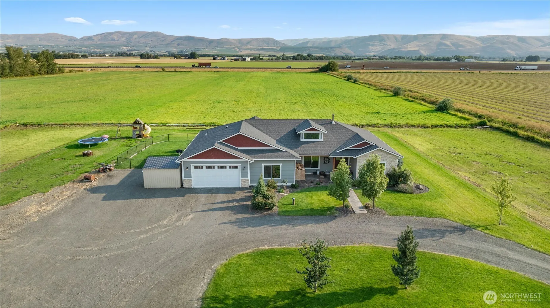 This alluring 2,574 SqFt home features 4 beds/2.5 baths and is nestled on a serene dead-end street offering breathtaking mountain views on 7.78 irrigated acres and outdoor space. Inside, discover a spacious floor plan with a grand living room, large family room, and a gourmet kitchen complete with granite countertops, double ovens, and a dedicated butler’s pantry with a second refrigerator & prep area. The luxurious primary suite boasts a walk-in closet, en-suite bathroom with a large soaking tub, and dual vanities. Enjoy the outdoors on the lit covered patio, perfect for entertaining while taking in the stunning scenery. With vaulted ceilings & an attached 2-car garage, this property offers the perfect blend of comfort, style & space.