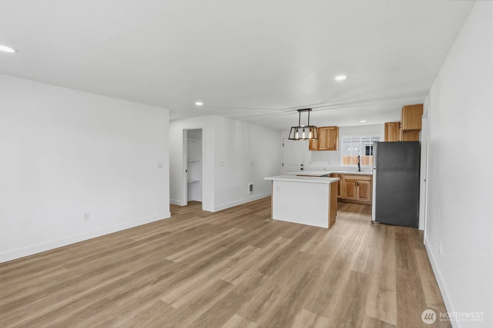 Welcome to this beautifully updated 3-bedroom, 2-bath home offering over 1,300+ sq ft of modern living space. Step inside and fall in love with the open floor plan enhanced by designer finishes throughout. The stunning kitchen features new stainless-steel appliances, updated cabinetry, quartz countertops, and a large center island—perfect for entertaining friends. The spacious primary suite includes a private bathroom with a custom tiled shower surround and a new vanity topped with quartz countertops. Interior updates include new doors, millwork, fixtures, lighting, and flooring throughout. Outside, enjoy peace of mind with a new roof, fresh exterior paint, new siding, and fencing. The oversized back patio offers the ideal space for outdoor dining, relaxing, or hosting gatherings. Additional features include a 1-car garage and a convenient location near Mountain View Elementary, shopping, and freeway access. This move-in-ready home blends style, comfort, and convenience—don’t miss your opportunity to make it yours!