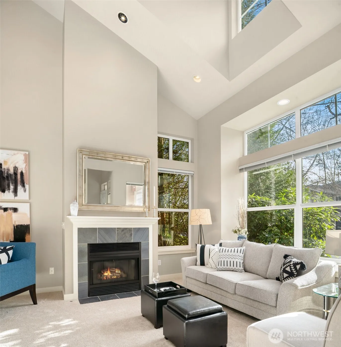 Welcome to this beautiful end-unit townhome in Redmond’s highly sought-after Rivertrail community, offering 1,725 sq ft of bright, open living space. With 2 bedrooms, 2.5 baths, and a versatile loft or office, the home is enhanced by vaulted ceilings, skylights, and new flooring throughout. The kitchen flows easily to a private dining area, while the sun-filled living room—framed by additional end-unit windows—features a cozy gas fireplace for year-round comfort. The vaulted primary suite offers a well-appointed ensuite with soaking tub, walk-in shower, skylight, and generous closet space. Recent updates include A/C and a newer furnace. Additional highlights include a dedicated laundry room, window coverings, and a rare 2-car garage with abundant nearby guest parking. Enjoy a private, fenced patio backing to a quiet alley and direct access to the Sammamish River Trail for exceptional outdoor living. Ideally located just minutes from shopping, dining, parks, Light Rail, Microsoft, Meta, and top-rated Lake Washington schools. Thoughtfully repositioned in today’s market, this refreshed price presents a compelling opportunity for buyers seeking comfort, convenience, and long-term value in one of Redmond’s most desirable communities.