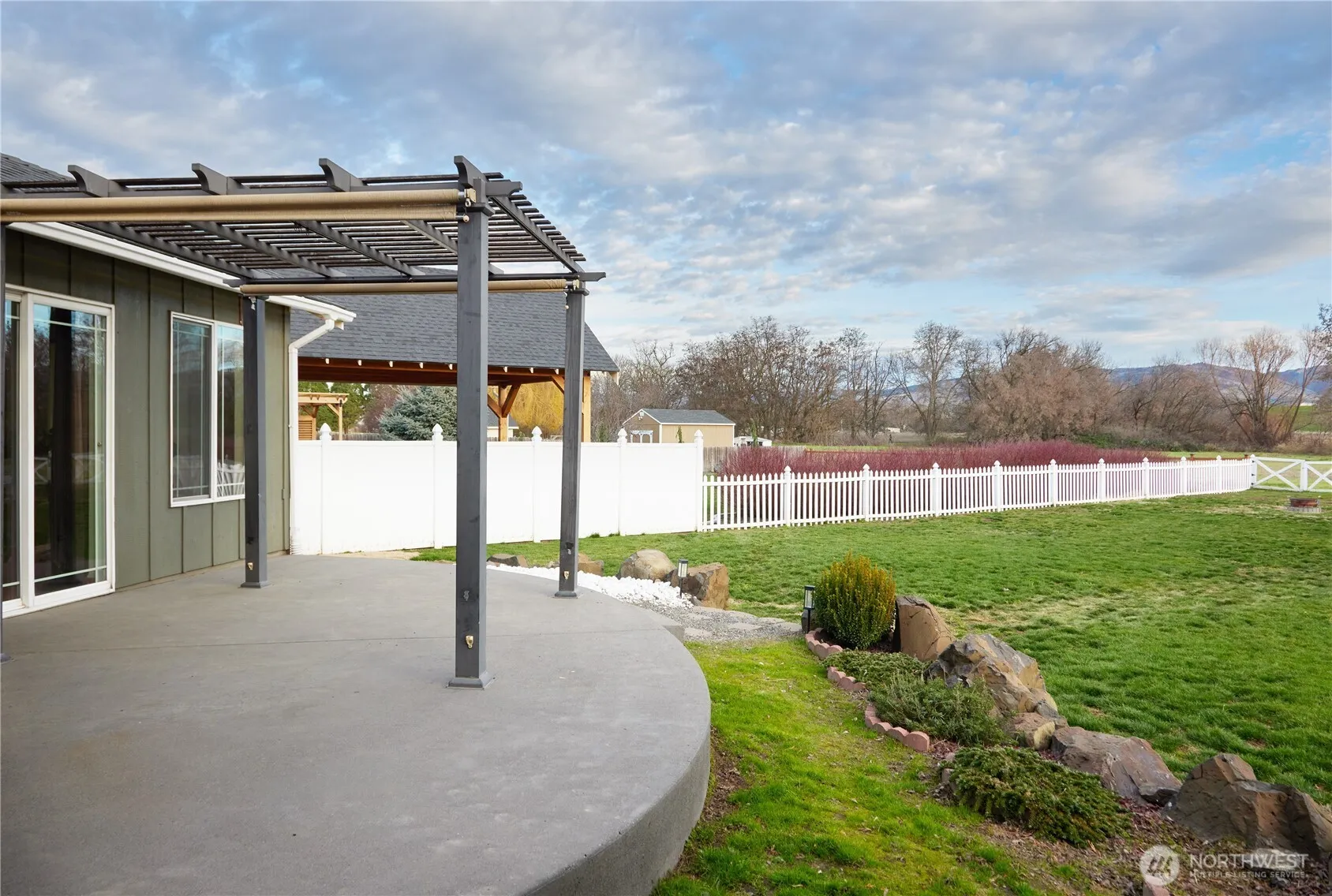 A 1-owner, custom-build by Thonney Construction. This single-level 1840 sf home in the Triple Creek Addition on a .37-acre lot with 180° unobstructed Blue Mountain Views features 4 bedrooms and 2 bathrooms with an open floor plan, vaulted ceilings- ideal for entertaining. Interior highlights: spacious living room with large mountain-facing windows, artfully handcrafted fireplace, matching granite countertops throughout the kitchen and bathrooms. The open kitchen features high-quality Medallion cabinetry throughout, hardwood flooring, and all appliances included. Dining area opens to a stamped concrete patio overlooking the mountains. Enjoy a luxurious master bath with a footed tub and a tiled step-in shower. The primary suite includes a walk-in closet and private bath. Exterior/other features: 2-car attached garage, off-street parking for RV or trailer, attic and cemented crawl space storage. Extra land behind the home provides a buffer to Russell Creek that will never be developed, and abundant wildlife. A perfect combination of space, privacy, and stunning mountain views! Schedule your private showing for this one of a kind opportunity!