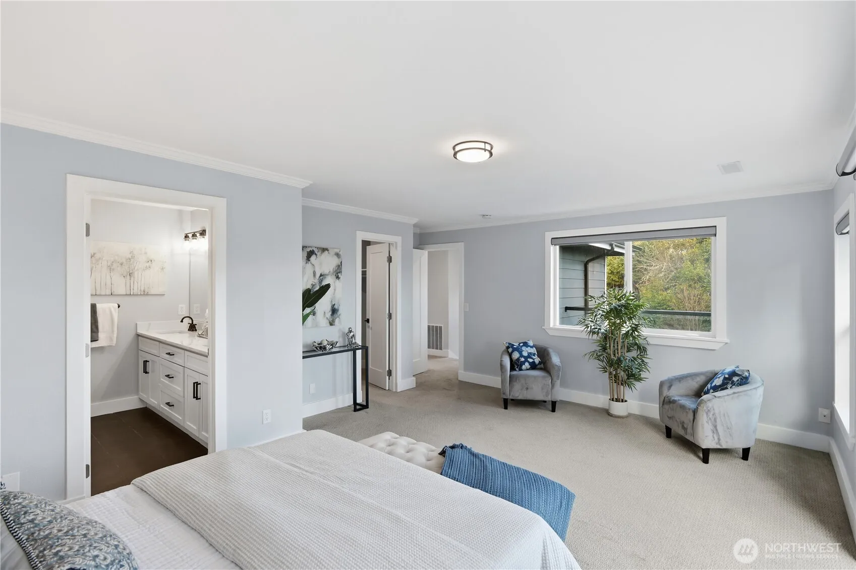 Beautifully upgraded home with over $300,000 in interior and exterior improvements. Features approximately 1,200 sq ft of outdoor deck space, including a custom wrap-around deck off the primary bedroom with Mt. Rainier and peekaboo water views—perfect for enjoying stunning sunrises. Inside offers custom blinds throughout with remote-controlled blackout shades in the primary suite. The property includes a brand-new paved and seal-coated driveway with parking for up to 10 cars, plus a large garage with epoxy flooring, custom lighting, &EV charging. Spacious backyard, large basement for storage, and located in a quiet, peaceful neighborhood just minutes from shopping and dining. Property includes a 600sft basement with the potential of being finished out or the use for storage.