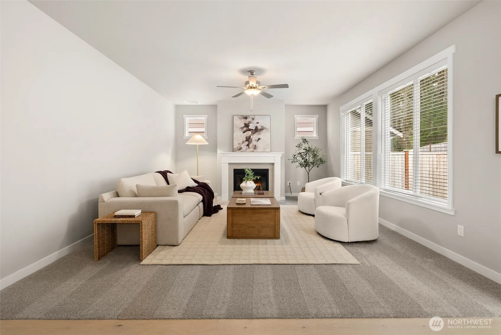 Just completed! Move-In Ready! The Rainier Plan is a 2-story home with 3 bedrooms, an oversized bonus room, and 2.5 bathrooms. Sitting on a premium lot that backs up to a wooded area, it features a kitchen with an eating bar open to the nook and spacious great room, quartz counters in the kitchen and bathrooms, and Shadow-stained maple cabinets with full-extension guides and soft-close drawers. Stainless steel appliances include a microwave/oven combo, gas cooktop with overhead vent hood, refrigerator and dishwasher. Hardwood floors run through the kitchen, dining, nook and entryway plus an added bonus, blinds throughout! There’s also a formal dining room and a butler’s pantry with a wine cooler. The primary suite offers a 5-piece bath, tile floors, and a large walk-in closet. The fully fenced backyard is landscaped with a patio for extra outdoor space. Energy-efficient touches include solar panels, a heat pump, and an electric hybrid water heater. Ideally located minutes from I-5 and the Hawk’s Prairie shopping area and just a short commute to JBLM (Joint Base Fort Lewis McChord). Some photos are virtually staged.