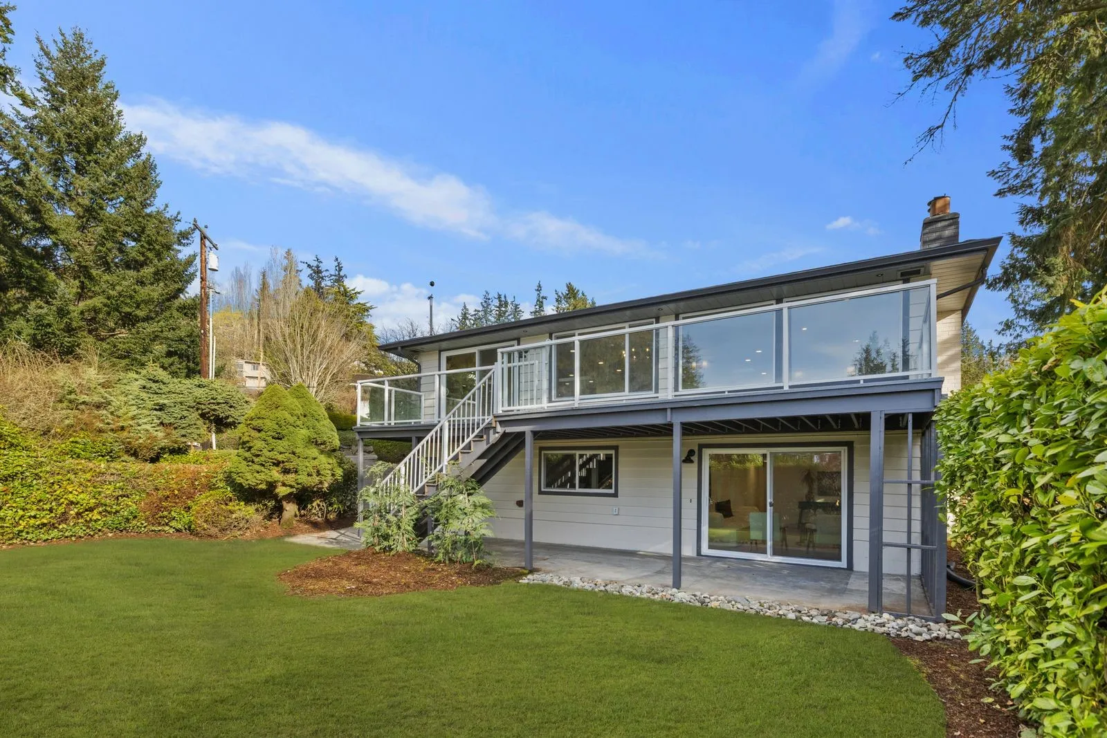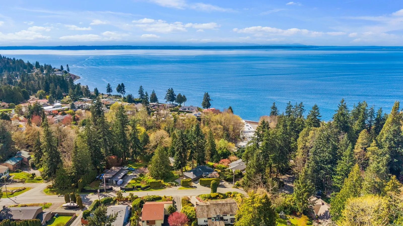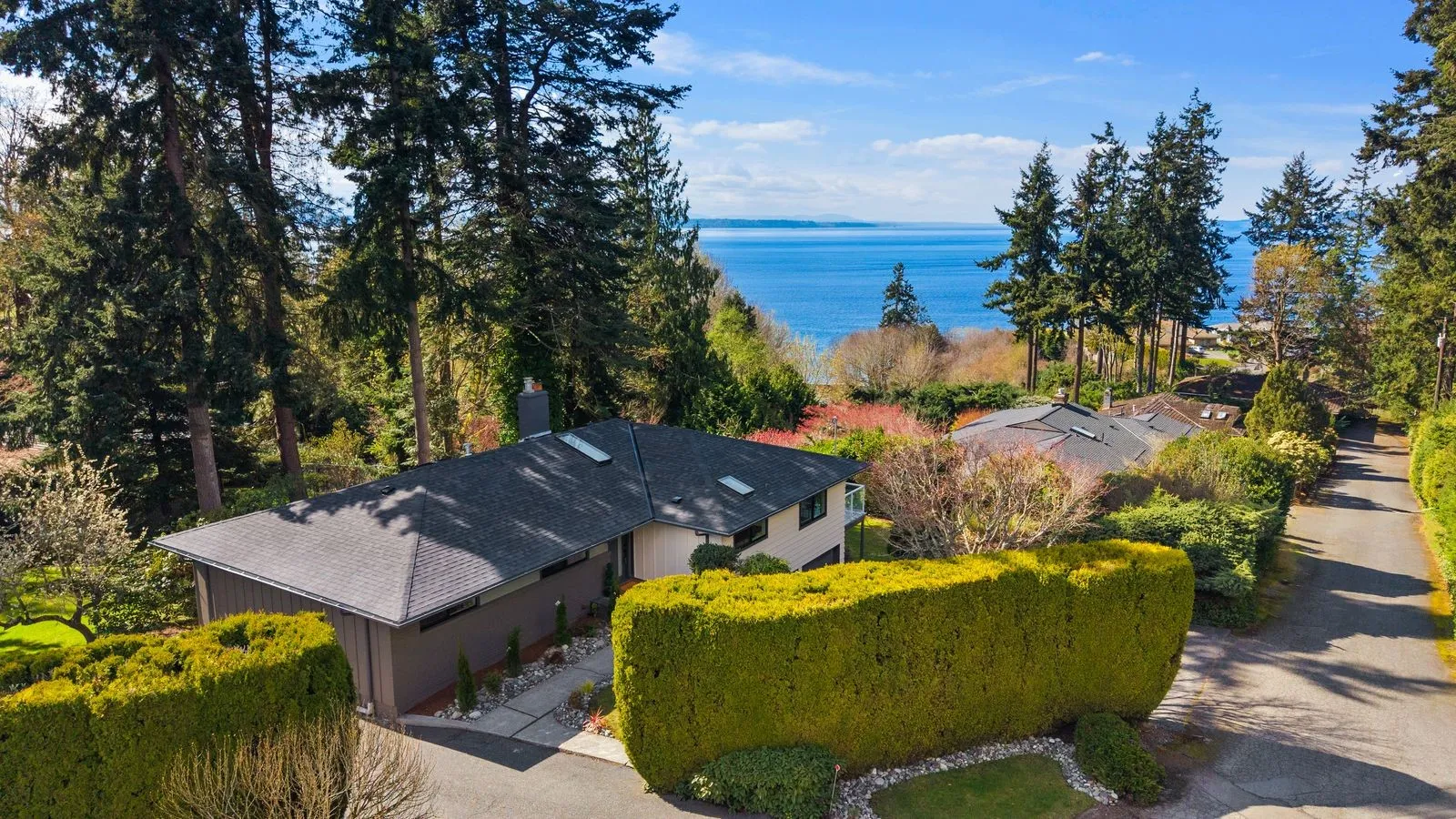 Perched for panoramic Puget Sound and Olympic Mountain views, this fully reimagined luxury residence defines elevated Pacific Northwest living. Spanning 5 bedrooms and 3 baths, the home offers expansive, light-filled interiors with impeccable flow, marrying modern sophistication with timeless elegance. The chef’s kitchen is a statement of refinement, featuring bespoke cabinetry, rare premium surfaces, and high-end appliances—all thoughtfully curated for both style and function. The living room impresses with a custom designer accent wall, floating shelving, and integrated lighting, creating an inviting yet contemporary ambiance.The primary suite is a private sanctuary, complete with a spacious walk-in closet and a spa-inspired bath showcasing a dramatic arched shower, elevated tilework, and designer finishes. Two additional bedrooms and a beautifully appointed guest bath complete the main level.The lower level is ideal for versatile living, with two bedrooms, a generous family room with wood-burning fireplace, and flexible space perfect for entertaining or multi-generational living.Premium upgrades include a new roof, upgraded electrical panel, high-efficiency furnace, heat pump, water heater, custom stair lighting, and a rare roundabout driveway with ample parking. Luxury, comfort, and iconic views converge in this extraordinary estate.