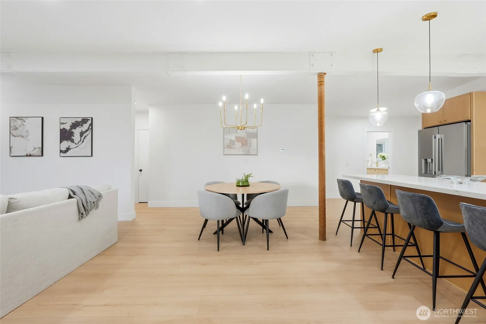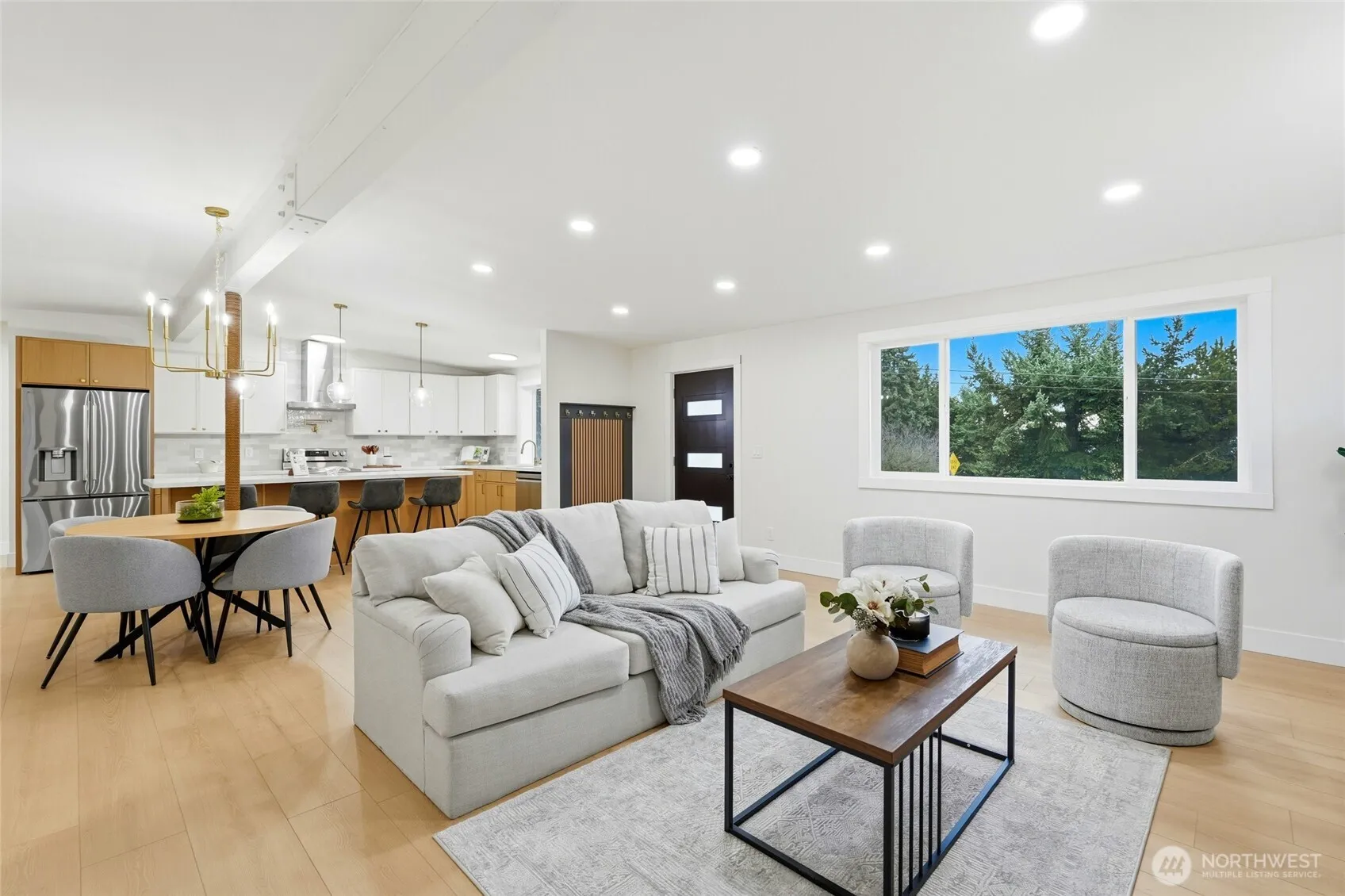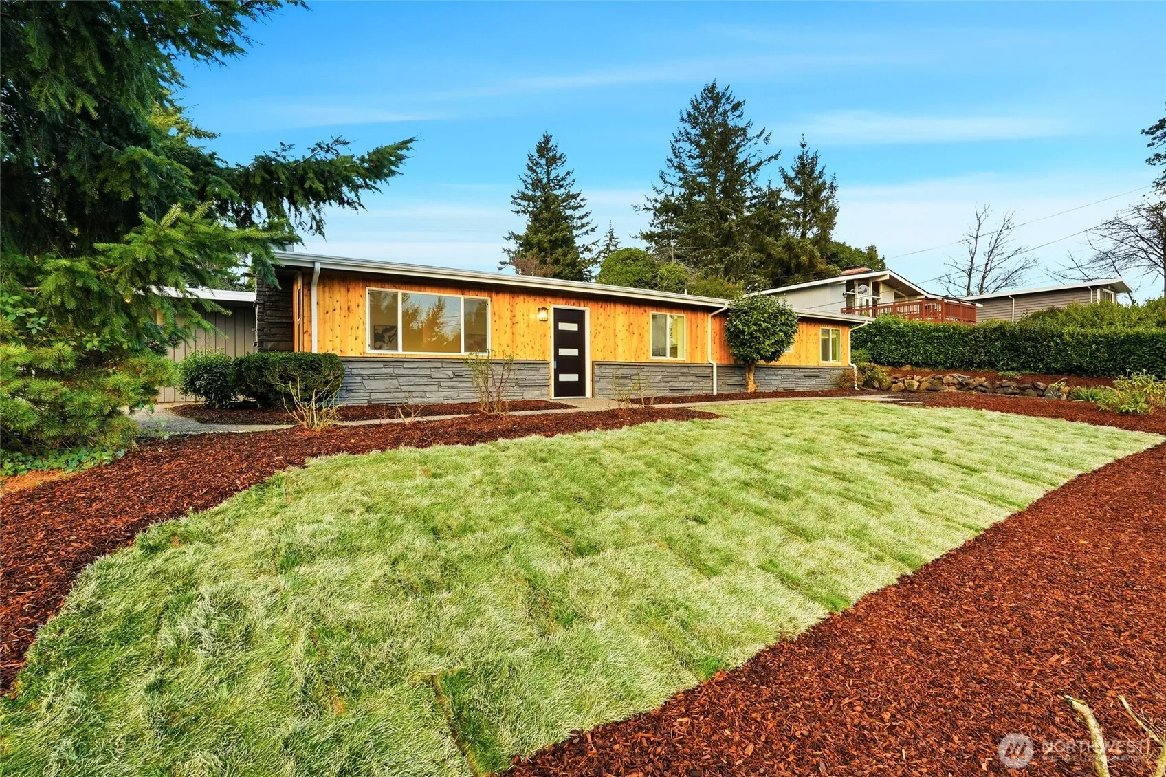 Welcome home to this beautifully renovated 4 bed/2.5 rambler that blends modern elegance with comfort and open space living. The home features brand new white oak kitchen cabinets with quartz counters, an oversized island and HEATED FLOORS throughout the house. The open concept kitchen and living room offer a spacious, airy feel, complemented by lovely mountain views. The bathrooms have been updated with tile, upgraded cabinetry and finishes. Situated on a large lot, the property includes a detached two-car garage and offers potential to build up to two DADUs (buyer to verify). Conveniently located near many amenities and Lake Washington! This home offers both luxury and opportunity in an exceptional setting.