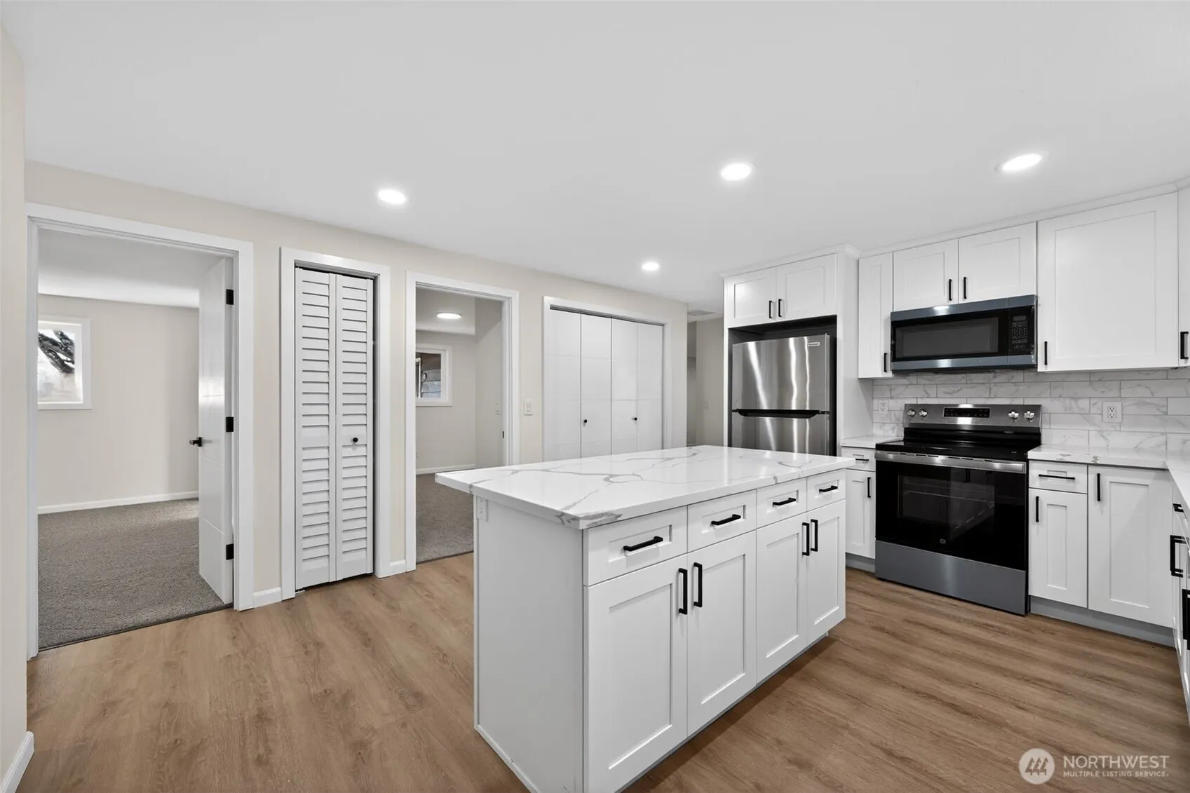 Beautifully updated 4-bedroom, 2-bath home in the desirable Benson Hill community offers 2,270 sq ft of flexible living space on a generous .24-acre lot. This thoughtfully refreshed residence features stylish vinyl plank flooring, a cozy fireplace, and a functional one-story layout ideal for modern living. The spacious kitchen comes equipped with stainless appliances and opens to inviting living and dining areas perfect for entertaining. A private primary suite and additional well-appointed bedrooms provide comfort and versatility for guests or home office needs. Enjoy a level lot with garden space, territorial views, and ample outdoor potential. Attached 2-car garage, forced-air heat, and no HOA. Conveniently located near shopping, schools, and easy access to Hwy 167—this move-in-ready home is a fantastic Renton opportunity.