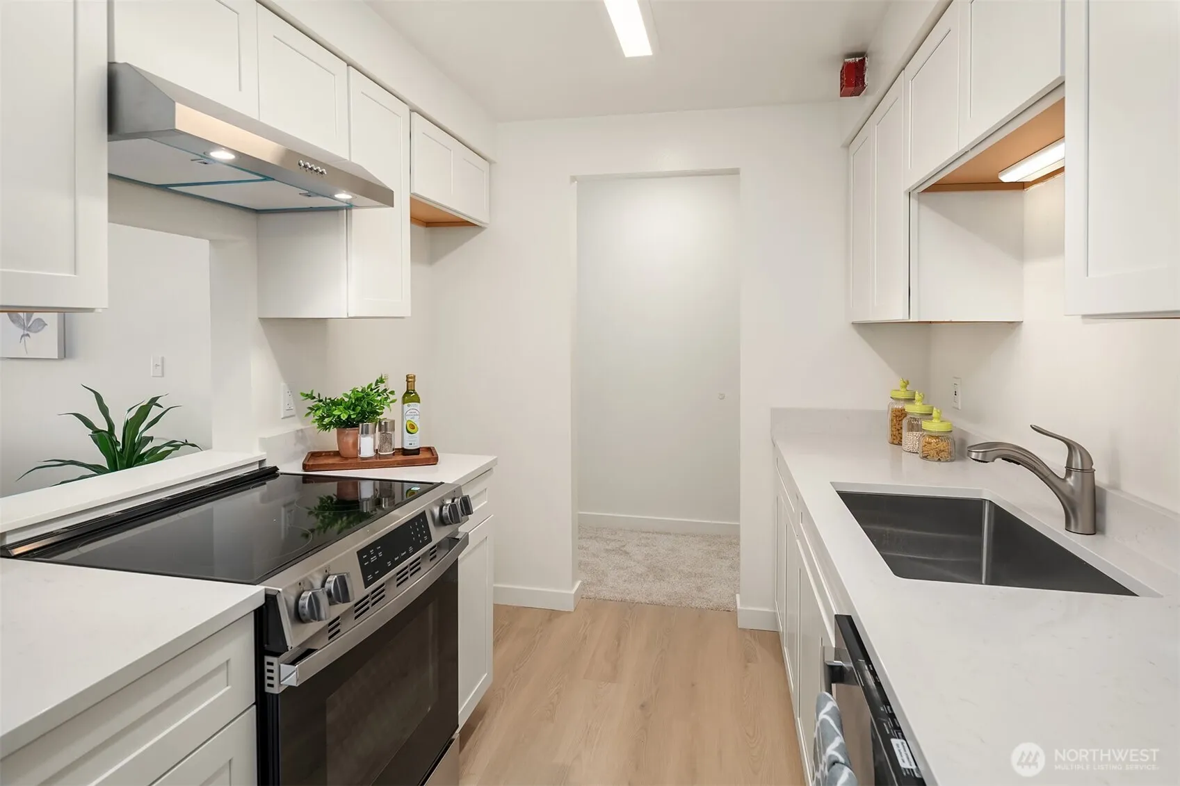 Minutes from Downtown Kirkland, this light-filled condo offers comfort, style, and exceptional convenience. The open layout features two bedrooms, an updated bath with a walk-in shower. The remodeled kitchen has new quartz counters, white cabinets and new appliances. Large living room with easy access to the balcony—perfect for morning coffee/evening relaxation. Laundry room conveniently located next right next to this unit. Secure building access and a well-maintained community add peace of mind. Unbeatable location near the Cross-Kirkland Corridor Trail, Met Market, parks, dining, and major tech campuses. Investor-friendly with no rental cap. HOA dues cover Water/Sewer/Garbage, insurance, exterior maintenance.