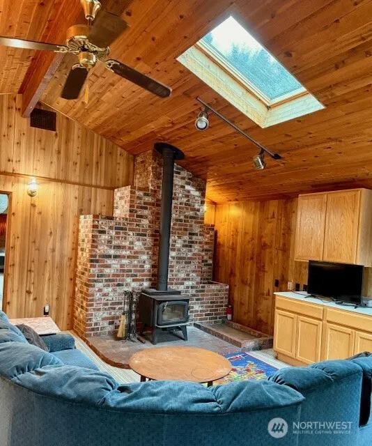 Welcome to this warm and inviting cabin, where character meets space and comfort. This home features gorgeous knotty pine ceilings and exposed beams. Solidly built with great bones, this spacious getaway offers a cozy yet open feel that’s perfect for everyday living or weekend escapes. Gather around the fireplace on cool evenings or enjoy the added warmth and charm of the wood stove, creating an atmosphere that’s ideal for relaxing with friends. The large lot includes a convenient pull-through drive that easily accommodates boats and trailers. Outside, a wraparound deck invites you to sip your morning coffee, entertain guests, or unwind after a day at the beach. Pet lovers will appreciate the large dog run, while hobbyists and adventurers will love the large detached garage/shop perfect for projects with plenty of room for storage. Whether you’re looking for a full-time residence or the perfect beach getaway, this property offers comfort, space, and endless possibilities. Come experience the warmth and charm for yourself—you may never want to leave.