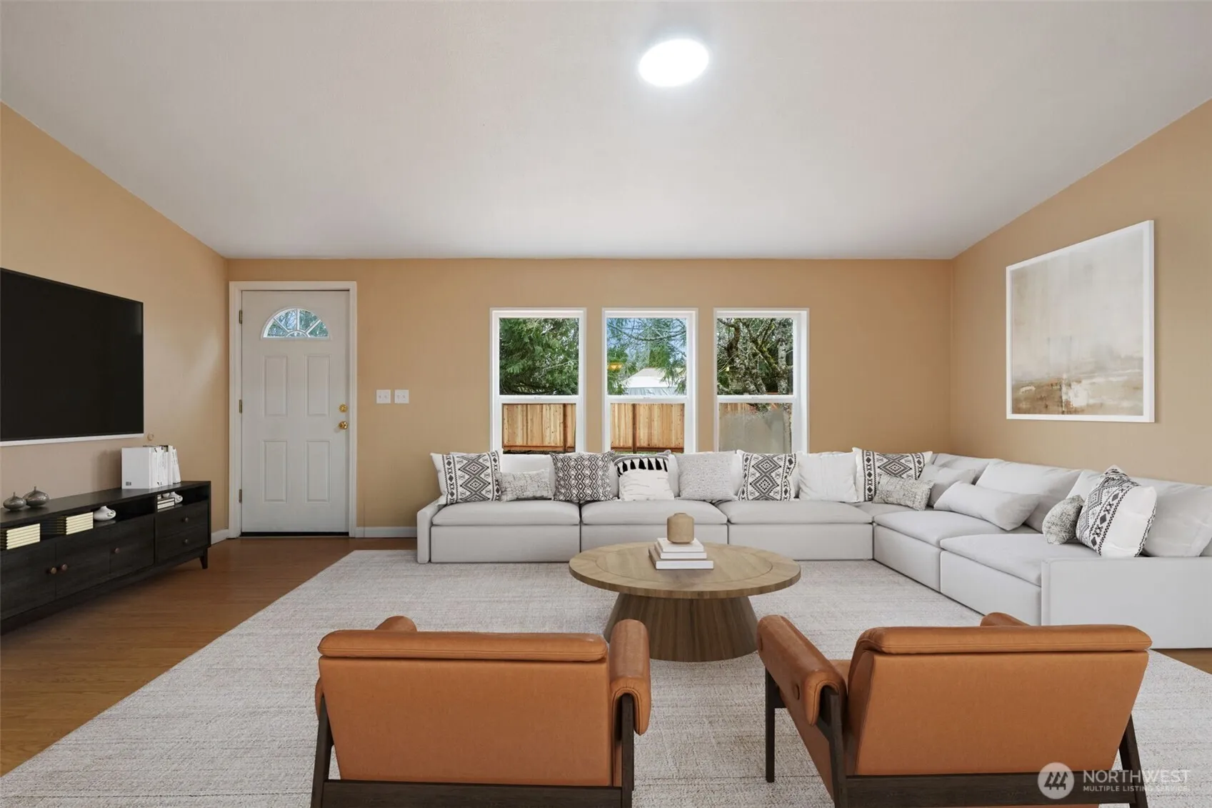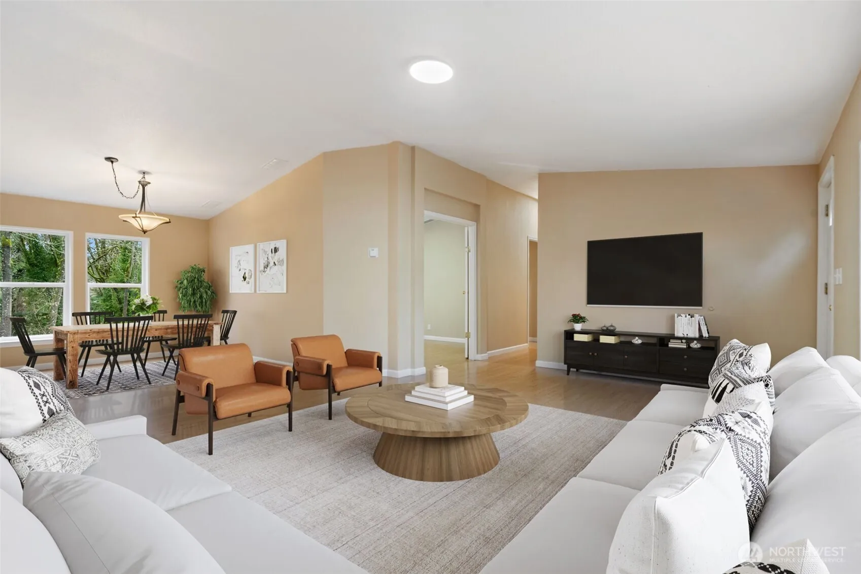 Turn-key, low maintenance rambler with privacy buffers on 3 sides, an ultra quiet setting. Ask for the 10-year crime-free Kitsap Sheriff’s report and pre-sale “punch list” for full confidence. Vaulted ceilings create an open, airy feel throughout. Thoughtful orientation fills the home with natural light, to a north-facing kitchen and south-facing living room & primary suite. The open design concept comfortably connects an updated kitchen with gas range to flow into living and dining areas. The later are both anchored by a cozy gas fireplace. Spacious primary bedroom includes walk-in closet and en-suite bath with double vanities, soaking tub, rain shower, and slip-resistant flooring. Two “flex rooms” – one near the living area and one off the kitchen – adapt easily for office, guests, or hobbies. Separate laundry and walk-in pantry add everyday convenience. Partially fenced yard features two mature flowering cherry trees and circular drive for easy access. Efficient 100% natural gas serves range, heat, fireplace, and dryer to support low lifetime utility costs. Low-maintenance siding, new cedar decks, and 2023 roof enhance durability. Uses city water/sewer. Two blocks from 8.4-acre Van Zee Park with pet area, bathrooms, covered shelter, lighted tennis and pickleball courts, basketball, disc golf, trails, and sports field. Close to shopping, medical services, EMT, highway ramps, & bus lines. Home+lot offers exceptionally low living, operating, and maintenance costs.
