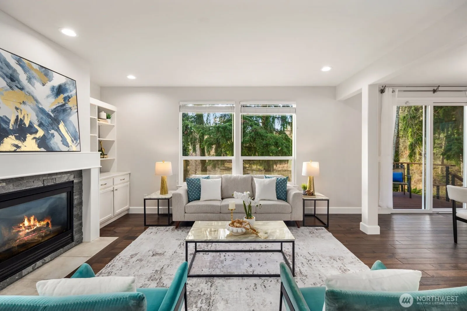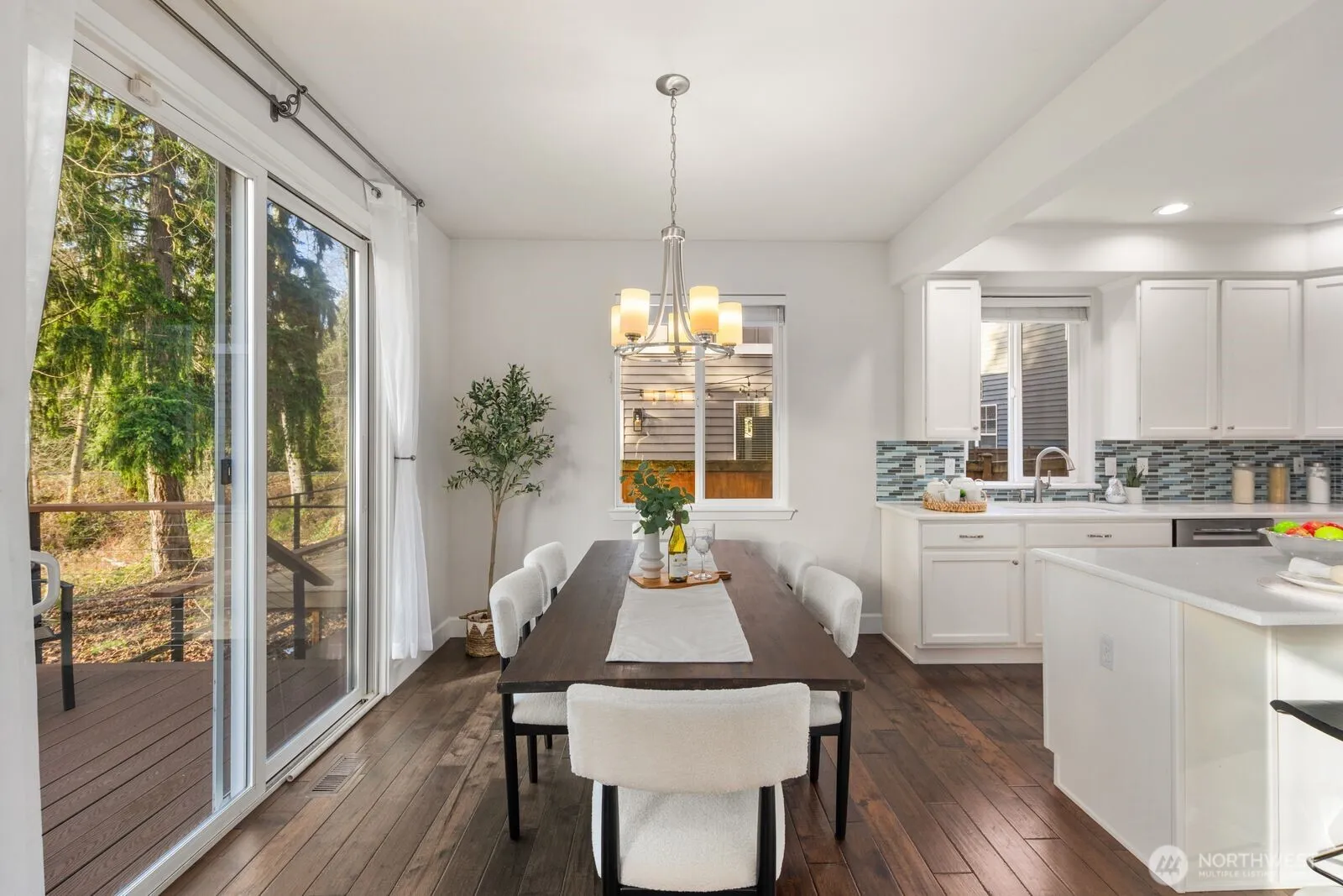 Set against a protected nature preserve, this refined 2-story home offers serene views, abundant natural light, and a peaceful, private setting. The open great room extends to a newer deck overlooking a tranquil backyard, ideal for entertaining or quiet evenings at home. Thoughtfully upgraded with a remodeled kitchen featuring quartz countertops and custom cabinetry, updated baths including a primary suite with Italian tile, hardwoods, A/C, furnace, and newer roof—providing true move-in readiness and peace of mind. Minutes to downtown Kirkland, Microsoft, Google, Meta, I-405, and Lake Washington schools.